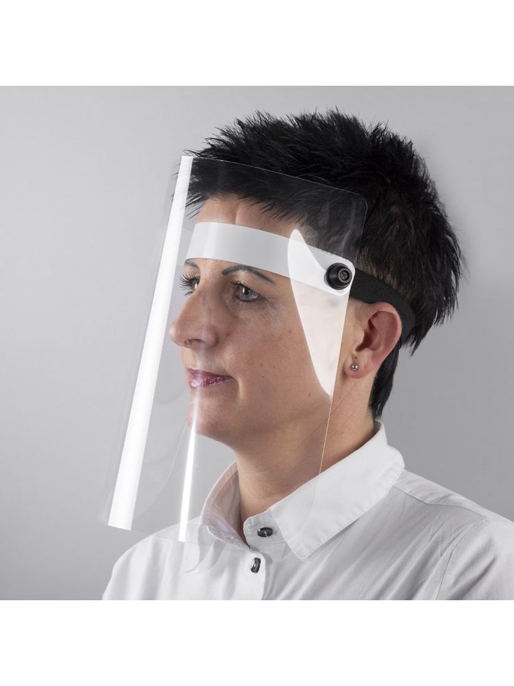 Front wykonany z przezroczystego materiału PET o grubości 176 mikronów. Przyłbica dopasowana do kształtu głowy dzięki elastycznej gumie. Wyprodukowana w Polsce. Pakowana pojedynczo. Produkt może być czyszczony alkoholem. Nie przyjmujemy zwrotów.