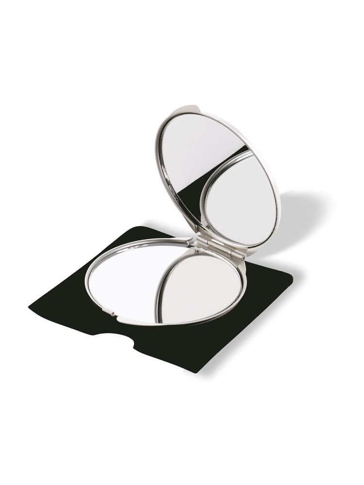 Aluminiowe lusterko, zwykłe i powiększające, w welwetowym etui.