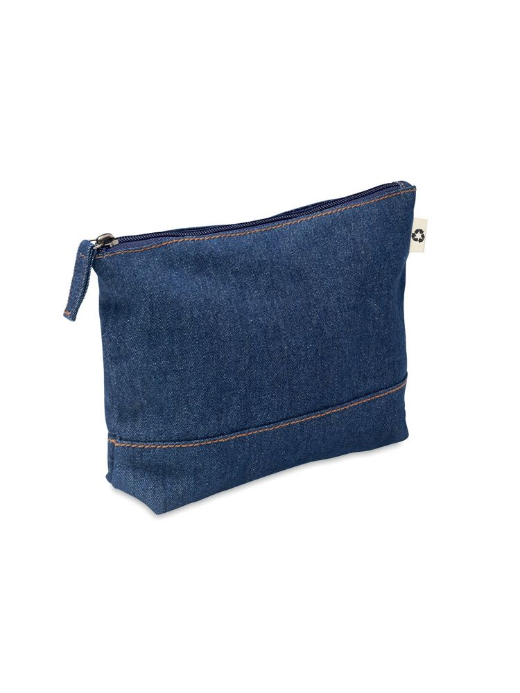 Kosmetyczka z zamkiem błyskawicznym, 50% bawełna z recyklingu i 50% bawełna barwiony jeans. 250 gr/m².