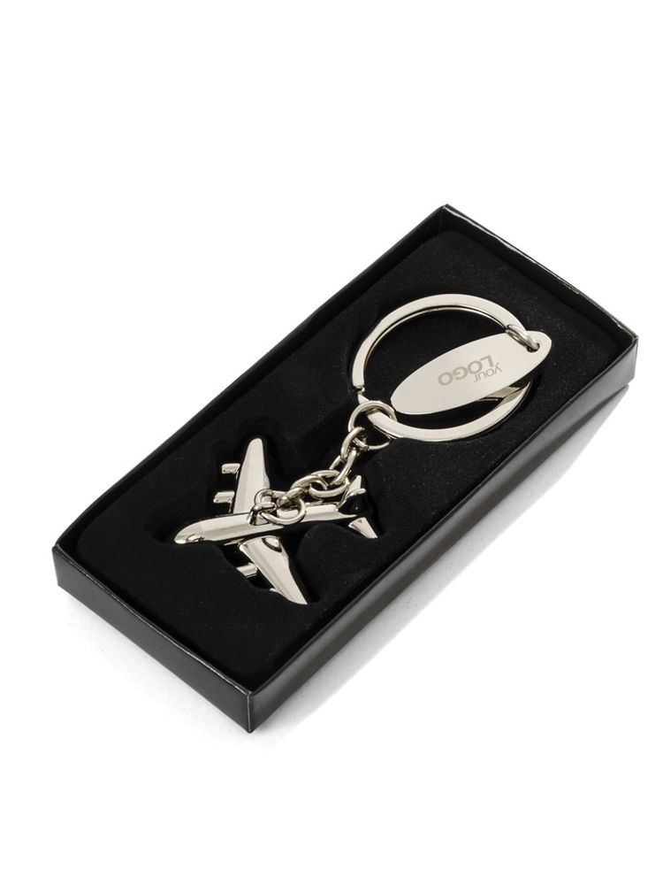 Brelok – miniaturka samolotu, o unikalnym trójwymiarowym kształcie wyjątkowo wiernie odzwierciedla detale prawdziwych samolotów. Brelok wykonany z chromowanego metalu, pakowany w elegancki czarny kartonik. Logo wygrawerujemy na blaszce zawieszonej razem z samolotem na jednym kółku.