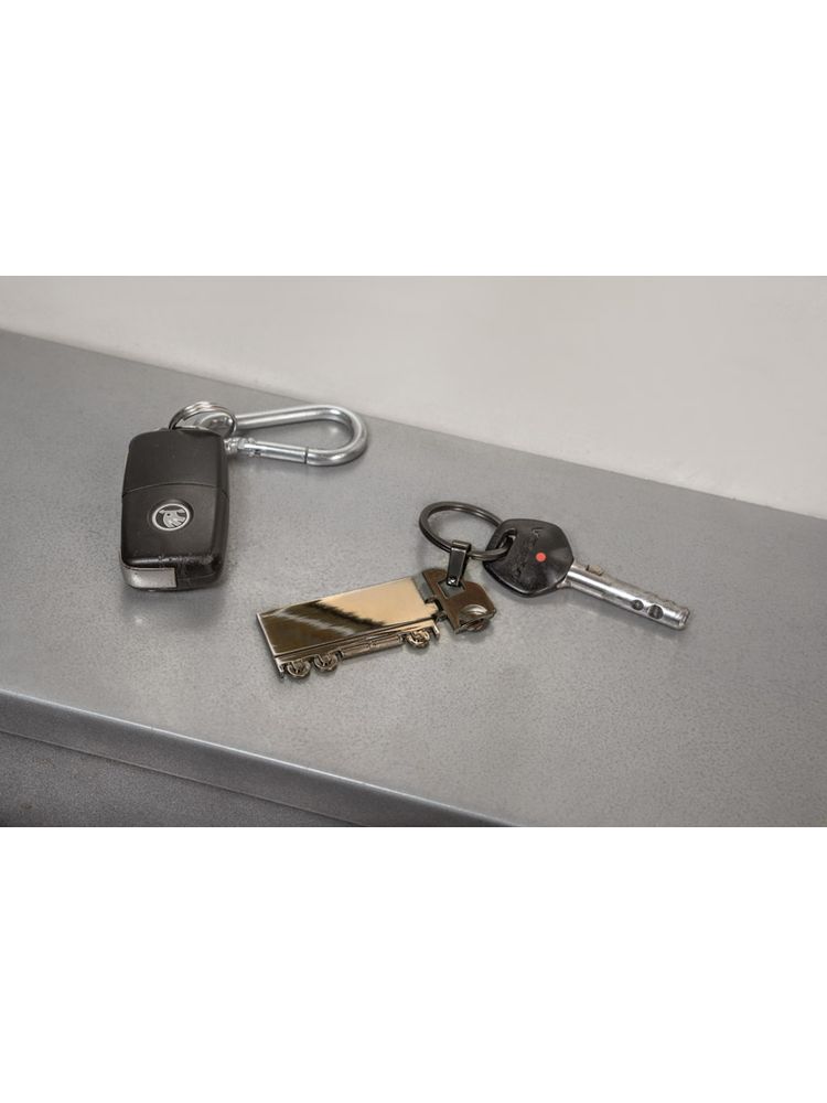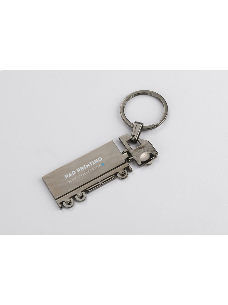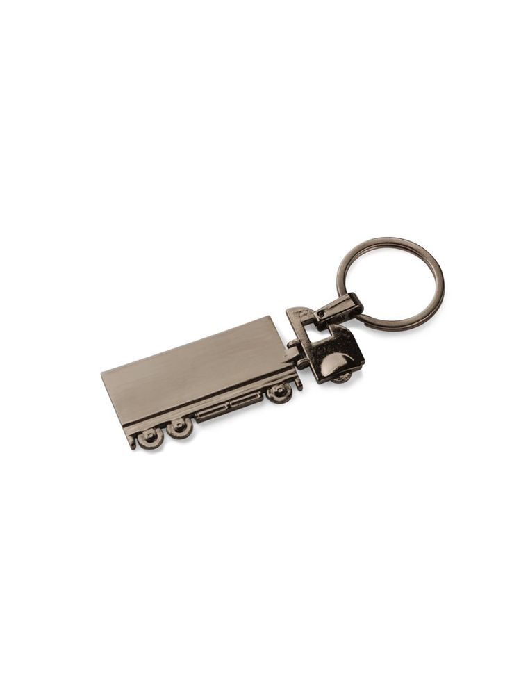 Brelok do kluczy w kształcie TIRa, dwustronny, wykonany z metalu.