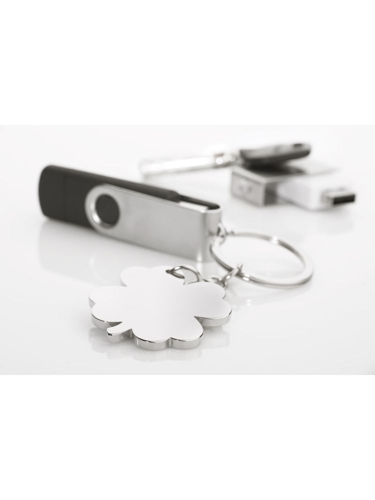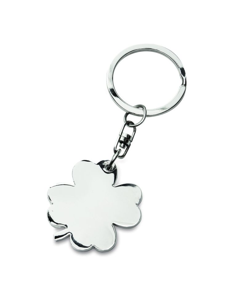 Brelok koniczynka czterolistna na szczęście dla wszystkich, którzy lubią mieć zawsze przy sobie gadżet na odstraszenie nieszczęśliwych zdarzeń. Brelok wykonany z chromowanego metalu. Logo grawerujemy na koniczynce.