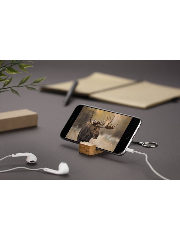 PENDE to praktyczny bambusowy brelok mogący służyć także jako stojak do telefonu.