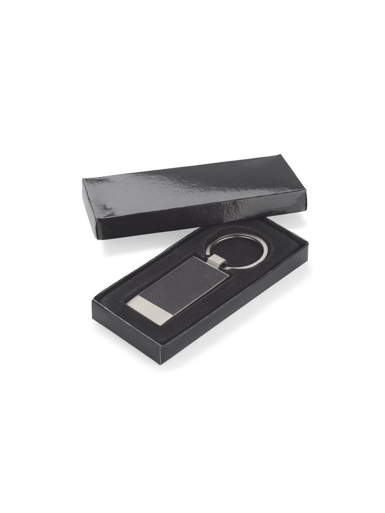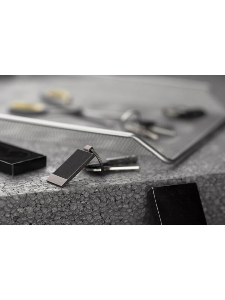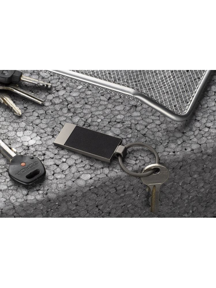 Metalowy brelok do kluczy z przyjemnym w dotyku materiałem. Pakowany w kartonik.