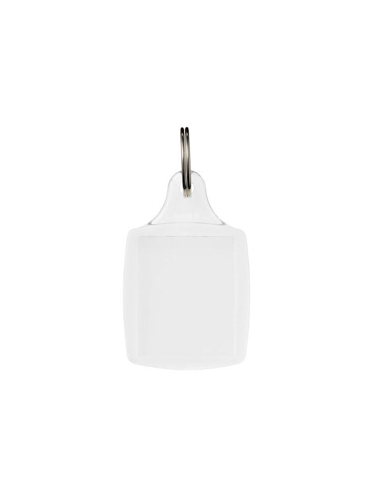 Breloczek A5 z metalowym pękiem na klucze. Zaprojektowany do noszenia papierowej wkładki lub zdjęcia paszportowego. Wymiary wkładu do druku: 4,5 cm x 3,5 cm.