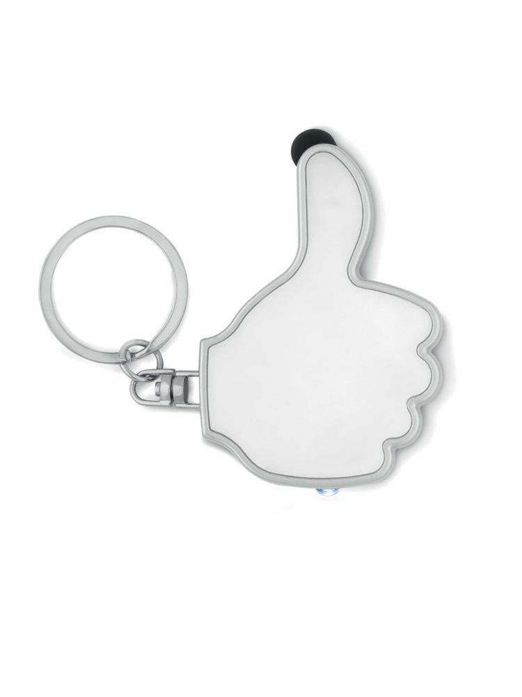 Brelok z końcówką do ekranów dotykowych oraz lampką LED. Baterie dołączone.