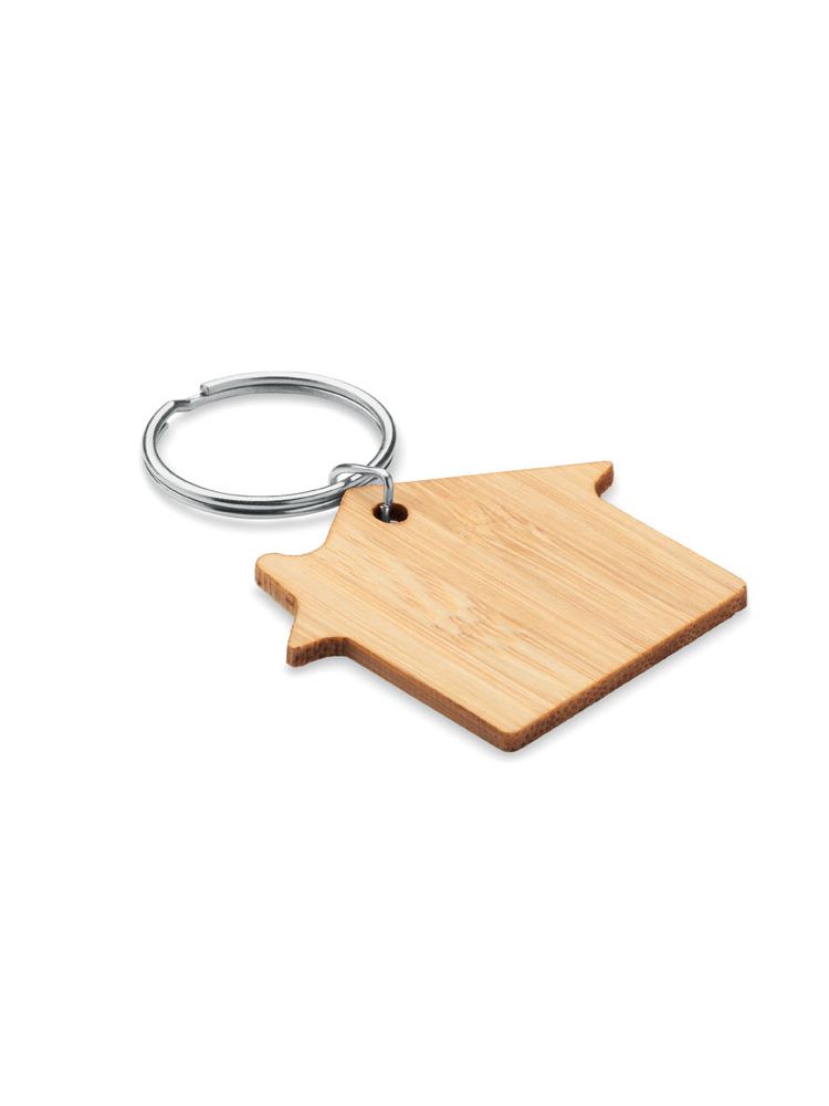 Bambusowy brelok w kształcie domu. Bambus jest produktem naturalnym, dlatego mogą wystąpić nieznaczne różnice w kolorze, wzorze i rozmiarze.