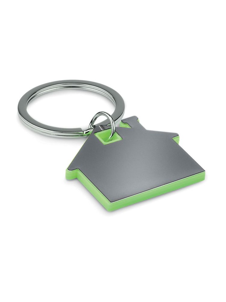 Brelok na klucze w kształcie domku, wykonany ze stali nierdzewnej oraz ABS.