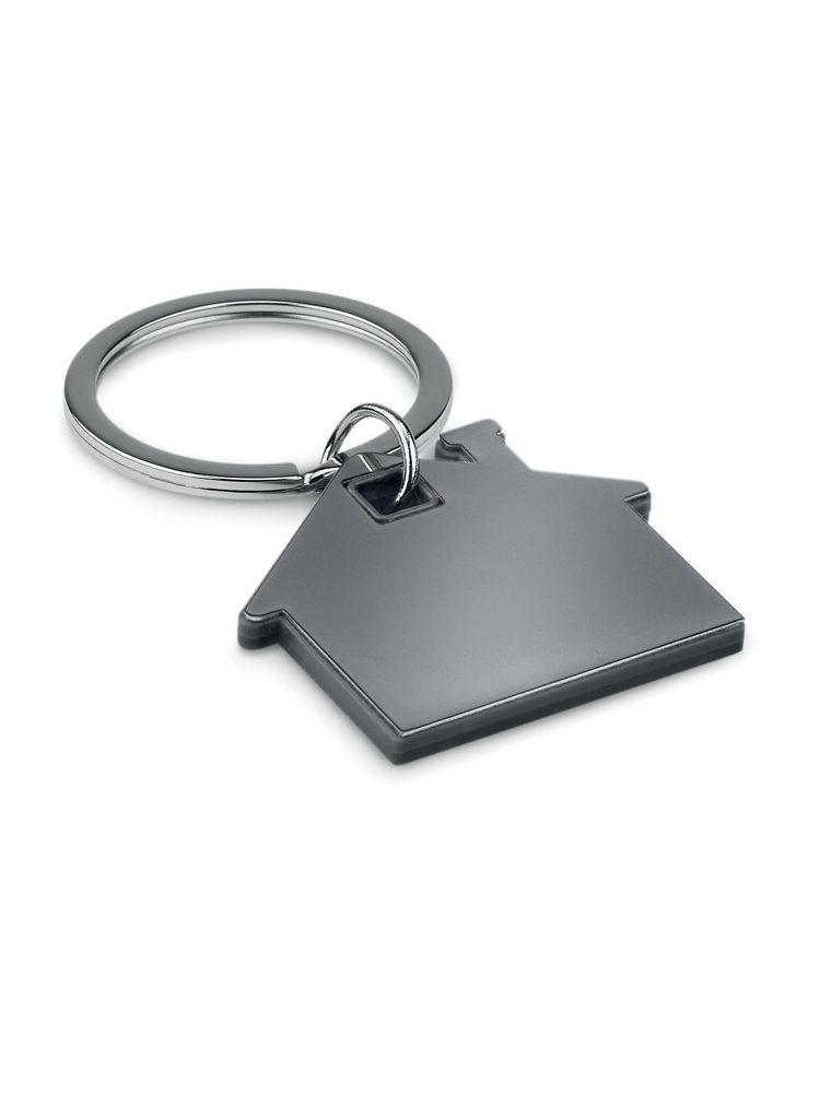 Brelok na klucze w kształcie domku, wykonany ze stali nierdzewnej oraz ABS.