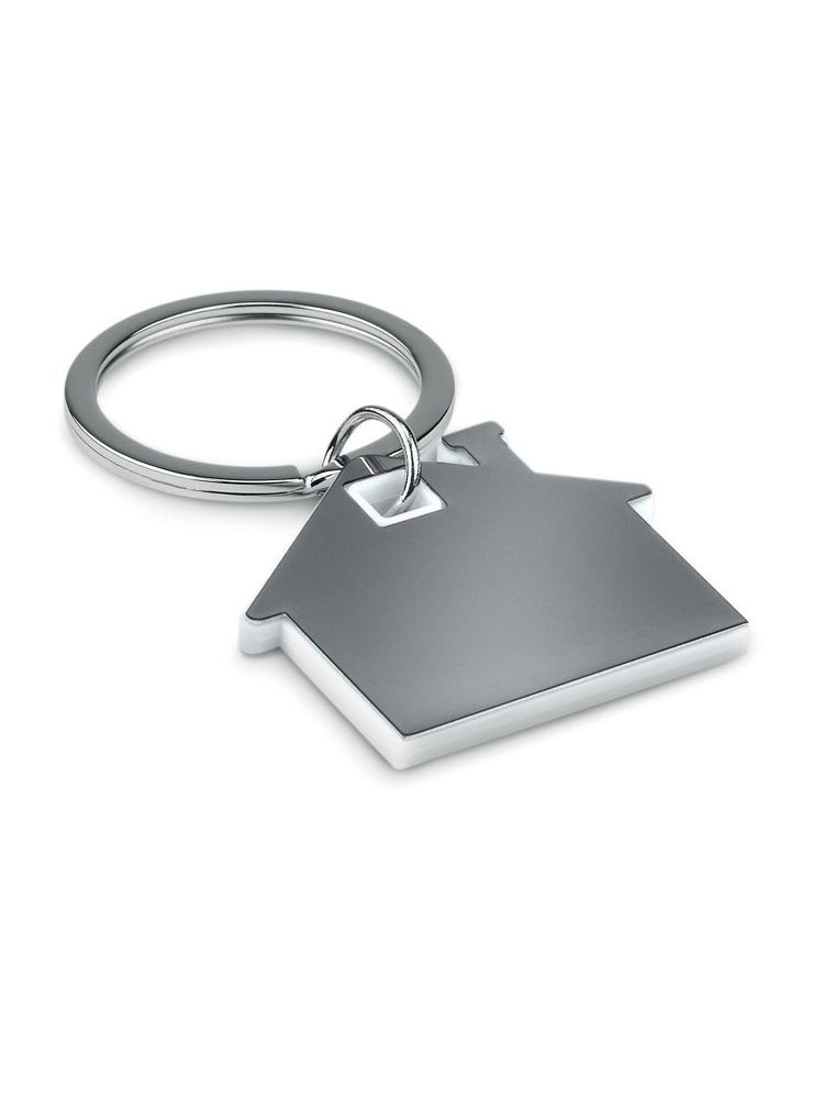 Brelok na klucze w kształcie domku, wykonany ze stali nierdzewnej oraz ABS.