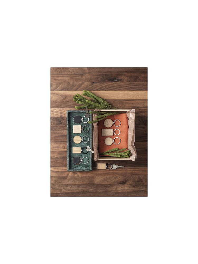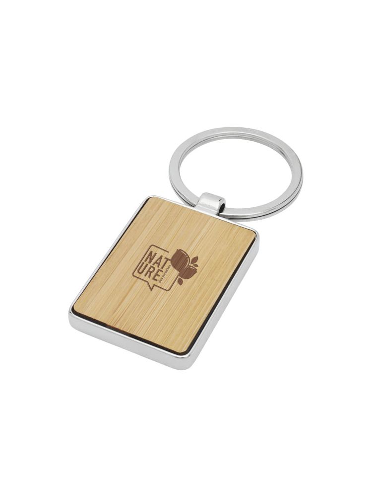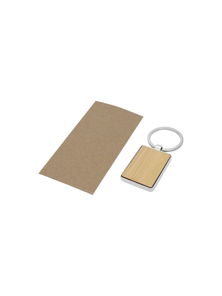 Najwyższej jakości prostokątny brelok do kluczy wykonany z bambusa i z oprawą ze stopu cynku, dostarczany w kopercie z brązowego papieru Kraft. Rozmiar breloka do kluczy wynosi 5 × 3 cm. Przeznaczony do grawerunku laserowego.