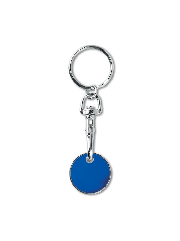 Brelok z żetonem (EURO) do wózka. Lakierowany na przedniej stronie. Żeton o wymiarach Ø2,3 cm i grubości 2,1 mm.