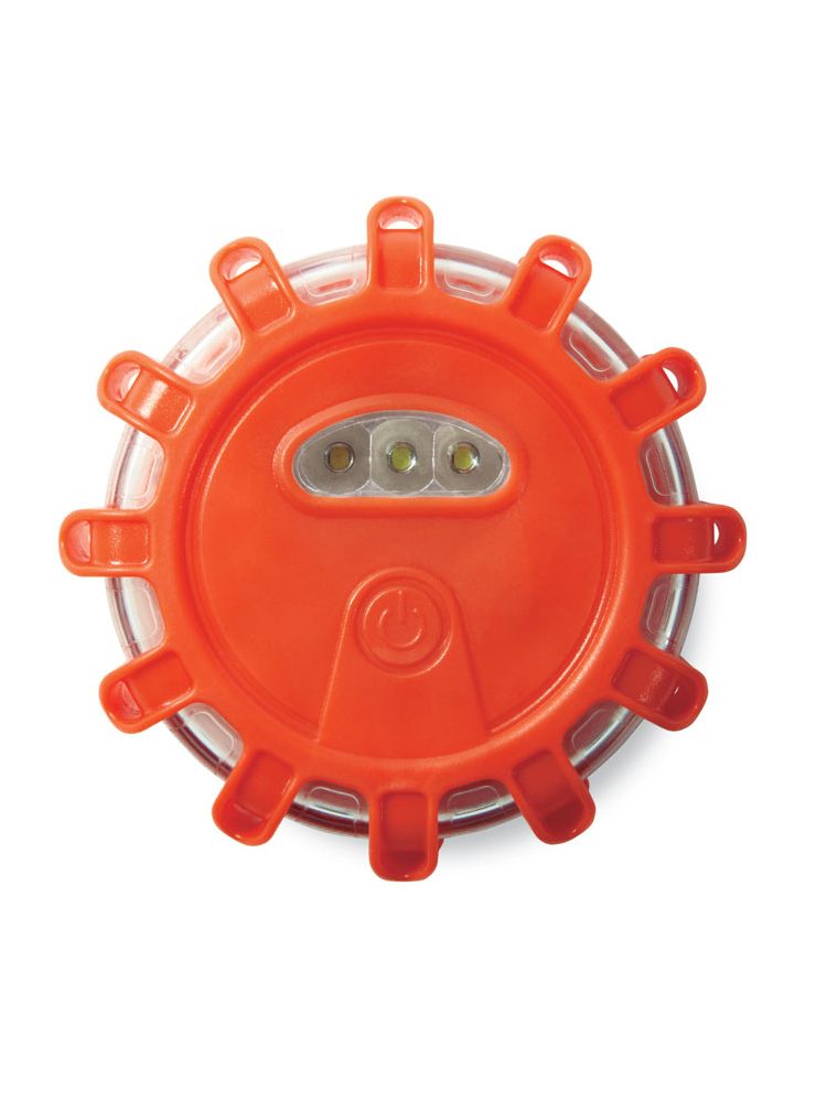 Światło 5 LED, tryby świecenia: światło stałe, tylko góra, obrotowe, migające i błyskające. Włącznik i wyłącznik. Częściowo gumowana i przezroczysta obudowa z magnesem i składanymi hakami na dole. Nie zawiera baterii (3x AAA).