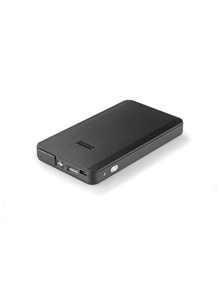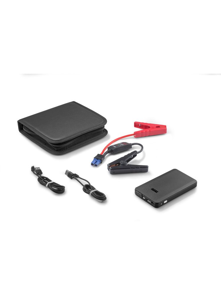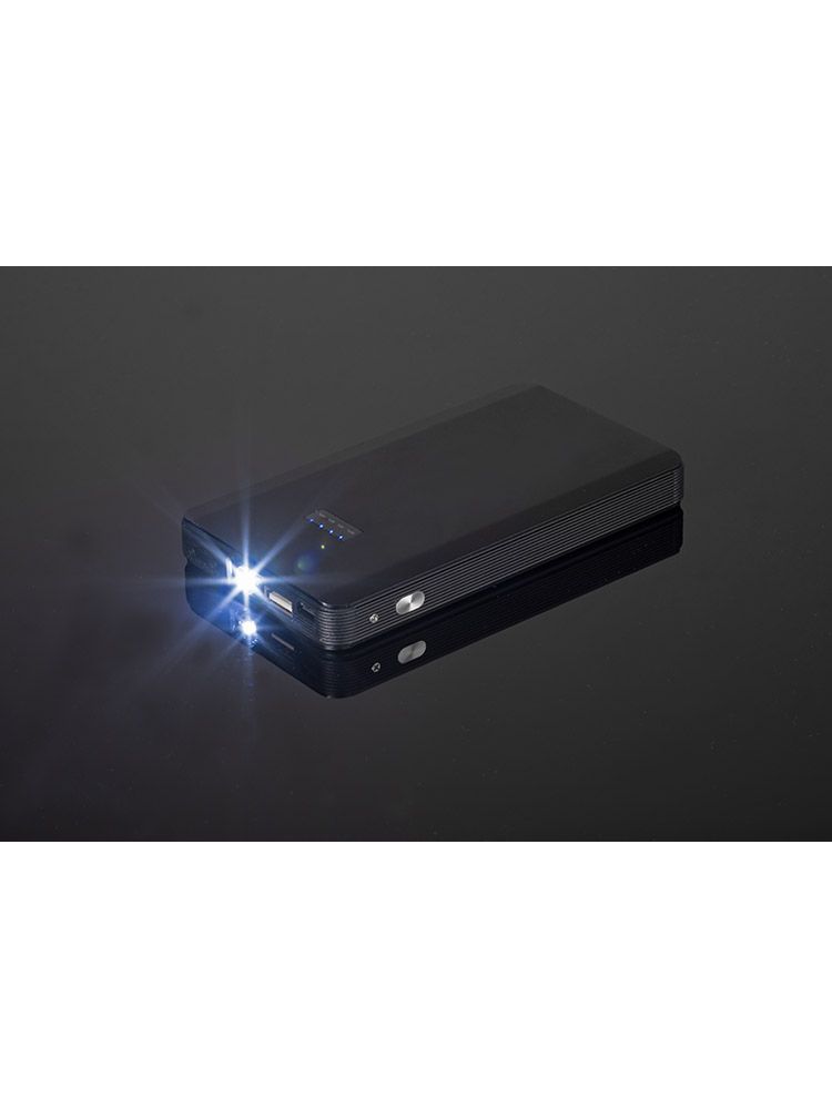 Uruchom auto power bankiem! Jump starter to klasyczny power bank o pojemności 6000 mAh z funkcją awaryjnego uruchomienia pojazdu. Wyposażony jest w latarkę LED o trzech trybach działania. W zestawie znajduje się całe potrzebne okablowanie: smart kabel z klemami, kabel USB-microUSB i USB-Lightning. Produkt zapakowany jest w eleganckie czarne etui z ekoskóry. Dane techniczne: wejście microUSB 5V/1A, wyjście USB 5V/2.1A, ochrona przed przeładowaniem i antyprzepięciowa. Jump starter – prąd rozruchowy 200A, prąd szczytowy 400A.