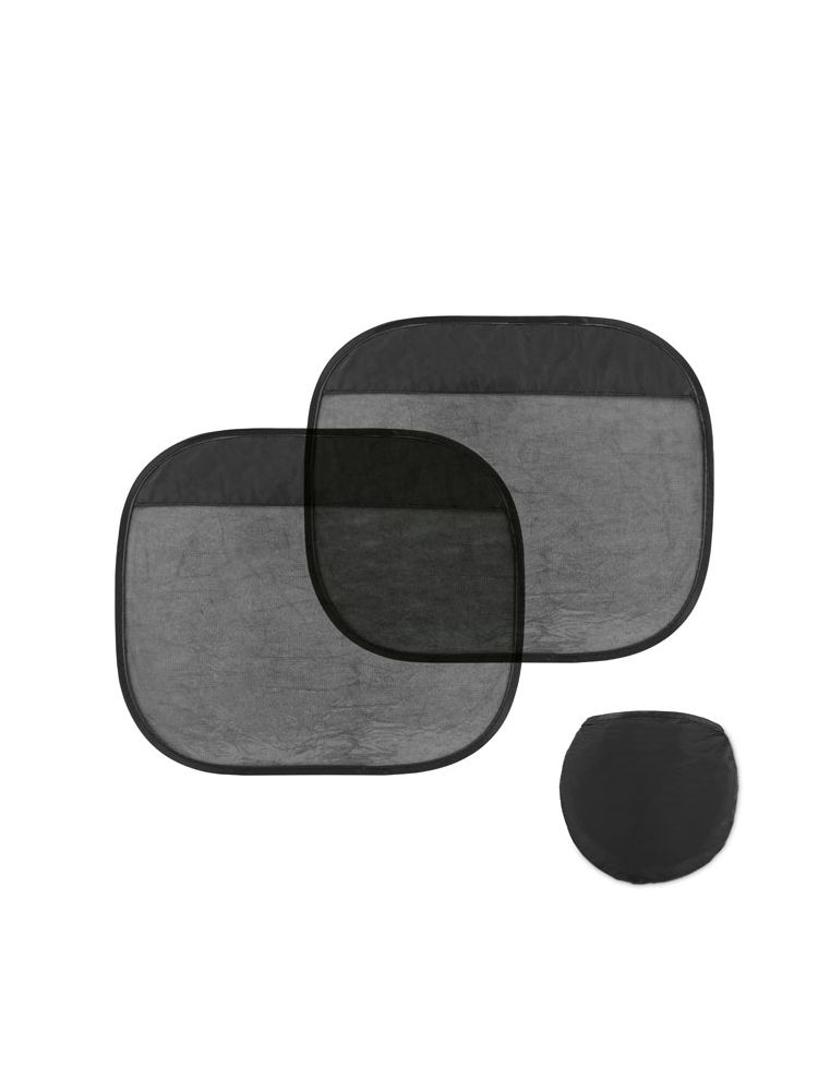 Zestaw 2 samoprzylepnych samochodowych osłon przeciwsłonecznych. W miękkiej torbie ze sznurkiem.