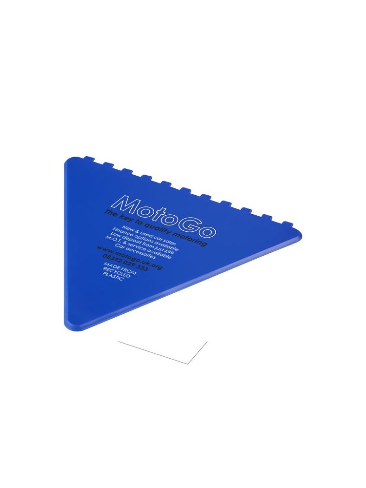 Trójkątny skrobak do skrobania szyby przedniej z dużym obszarem do dekoracji. Wyprodukowano w Wielkiej Brytanii z polistyrenu, tworzywa sztucznego pochodzącego z recyklingu.