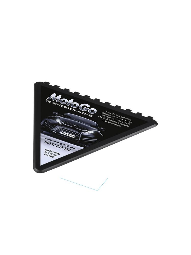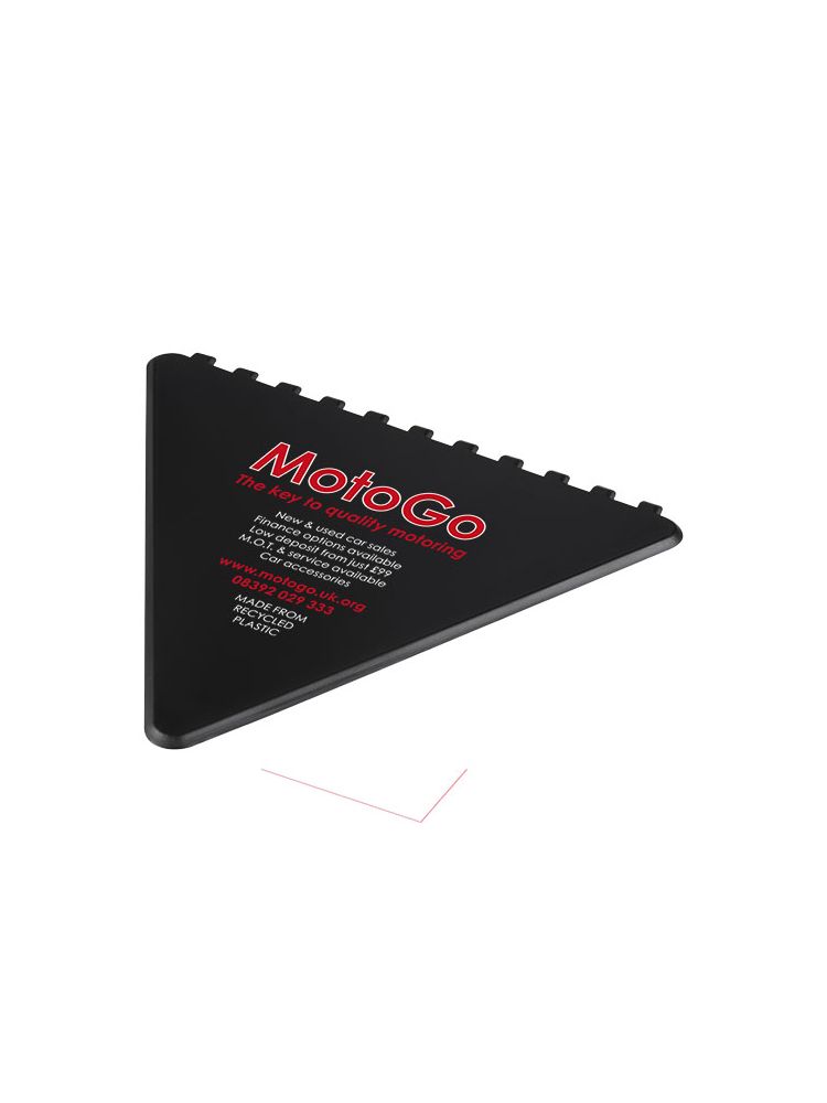 Trójkątny skrobak do skrobania szyby przedniej z dużym obszarem do dekoracji. Wyprodukowano w Wielkiej Brytanii z polistyrenu, tworzywa sztucznego pochodzącego z recyklingu.