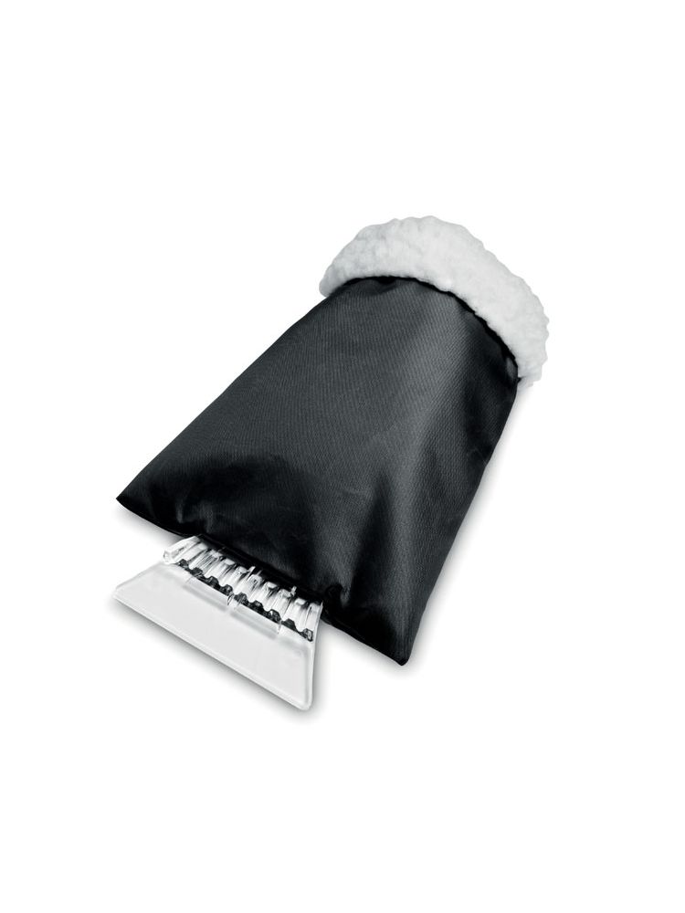 Plastikowa skrobaczka do szyb z ochronną i ciepłą rękawicą ze sztucznym kożuszkiem.