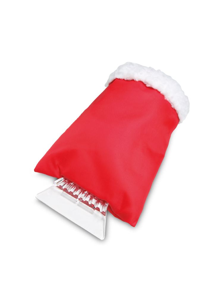 Plastikowa skrobaczka do szyb z ochronną i ciepłą rękawicą ze sztucznym kożuszkiem.