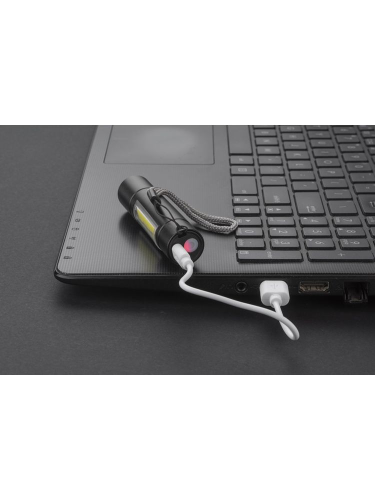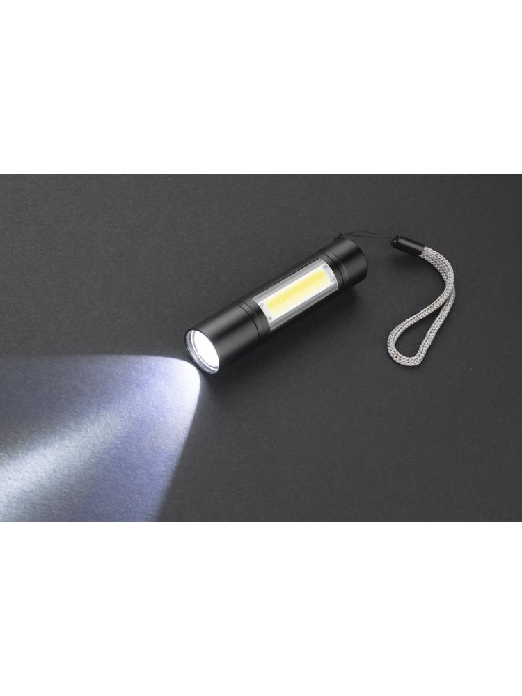 BATRI to wygodna i solidnie wykonana latarka z trzema trybami światła: ciągłe, migające i boczne COB. Wykonana z metalu. Wyposażona w smyczkę i wbudowany akumulator ładowany poprzez kabel micro USB, który znajduje się w zestawie. Moc latarki: 3W, pojemność baterii 550 mAh.