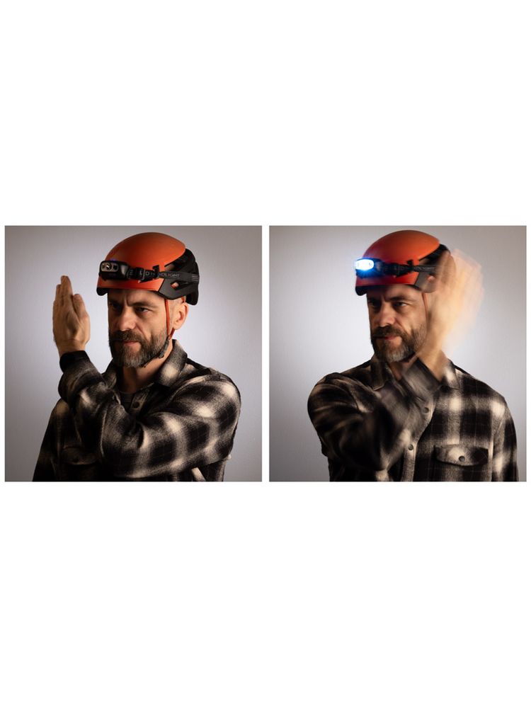 Latarka czołowa DELHIO z czujnikiem ruchu umożliwia obsługę światła bez konieczności dotykania latarki. Działa w dwóch trybach: z czujnikiem ruchu lub ciągłe światło sterowane przyciskami. Trzy natężenia światła: silne, umiarkowane oraz migające dostosowują oświetlenie do potrzeb. Ładowanie przy pomocy kabla z wyjściem USB-C, wejście do ładowania zabezpieczone gumową zatyczką. Regulowany kąt nachylenia i gumka na głowie z możliwością regulacji napięcia zapewniają wygodę użytkowania. Ergonomiczny design gwarantuje komfort noszenia.