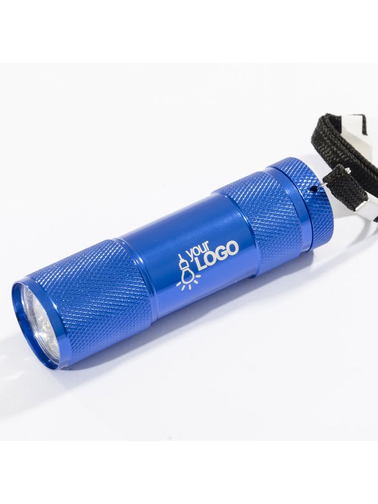 Metalowa latarka LED, 9-diodowa. Logo wygrawerujemy na korpusie latarki.