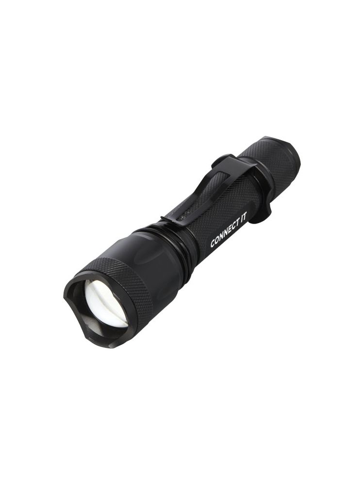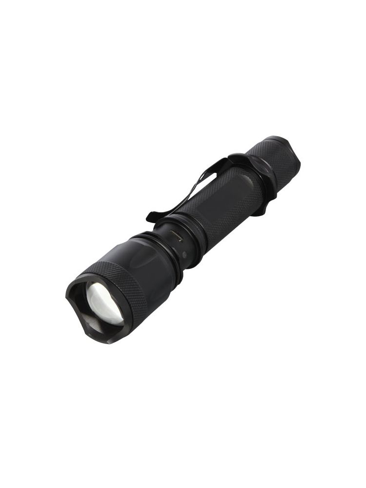 Koniec z problemem wyczerpania baterii dzięki tej ładowalnej aluminiowej latarce taktycznej o dużej mocy. Solidna czarna obudowa ze stopu aluminium oferuje taktyczny wygląd i odporność na uderzenia z 1 metra. Latarka posiada zaczep do paska ułatwiający przenoszenie i jest odporna na zachlapanie wodą dzięki klasie IPX4. Dioda LED o mocy 5W generuje światło o mocy 300 lumenów przez 3 godziny, a zasięg wiązki wynosi 200 metrów i posiada 5 różnych trybów świecenia: wysoki, średni, niski, stroboskop i SOS. Duża moc pochodzi z wbudowanego akumulatora litowego o pojemności 2000 mAh. Latarka ma wymiary 14,5 × 3,4 cm i waży tylko 170 gramów. Dostarczana jest z instrukcją obsługi i zapakowana w pudełko upominkowe z kartonu z recyklingu o wymiarach 17,5 × 6 × 4 cm. Zaleca się grawerowanie laserowe na aluminiowym korpusie.