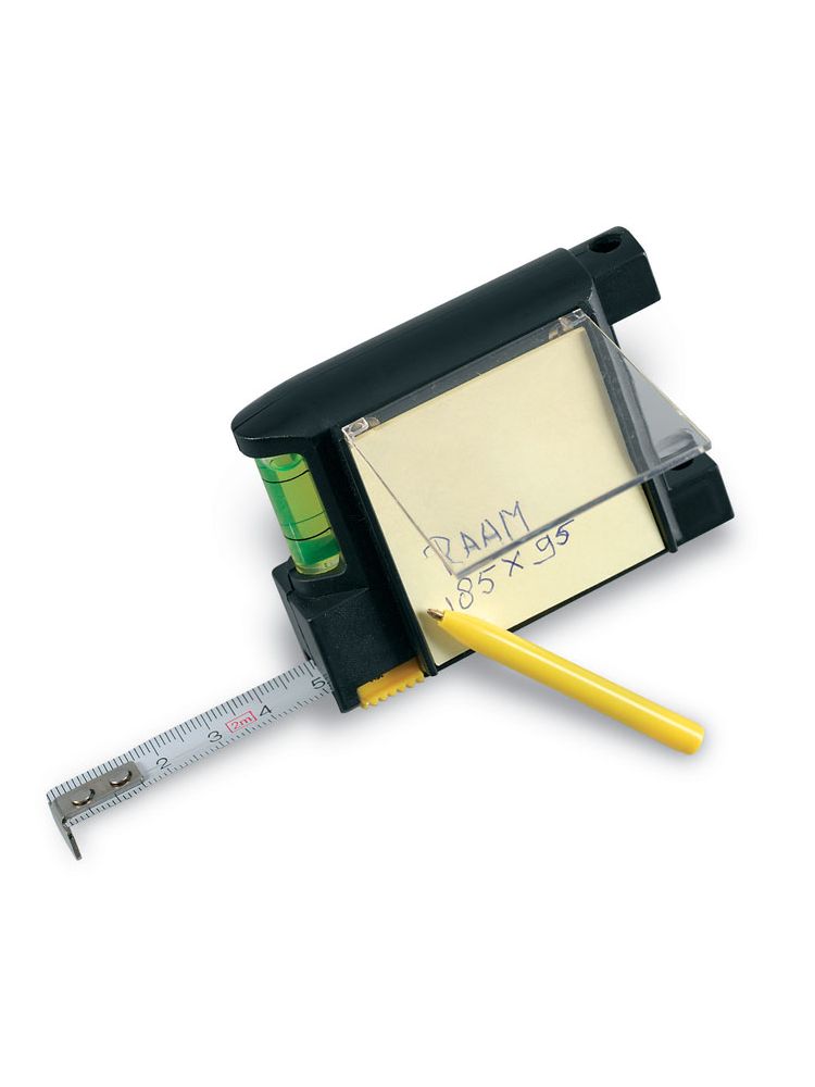 Miarka 2 m. W komplecie notes, długopis i poziomica.