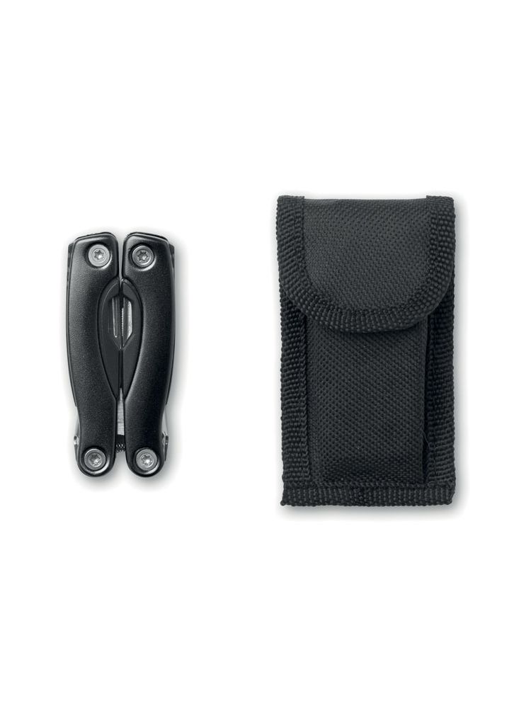 Składane narzędzie wielofunkcyjne ze stali nierdzewnej z kombinerkami. 9 funkcji. Pokrowiec z poliestru 600D.