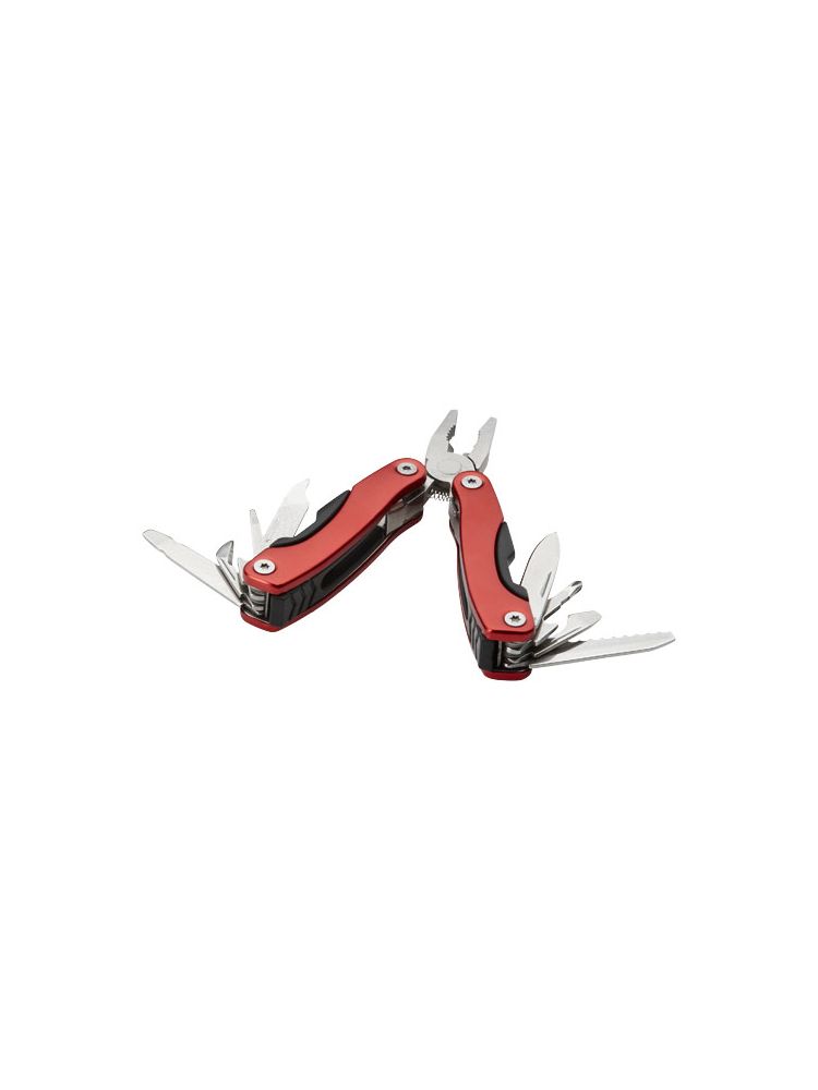 Kompaktowe multinarzędzie z 11 funkcjami, zapakowane w nylonowe etui.
