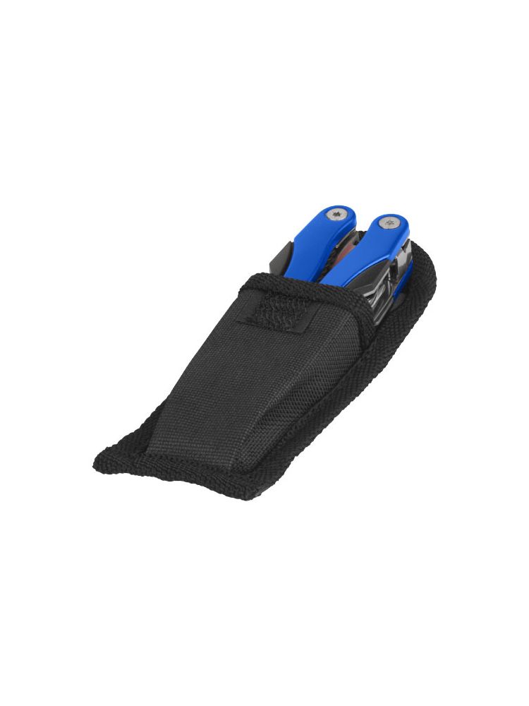 Kompaktowe multinarzędzie z 11 funkcjami, zapakowane w nylonowe etui.