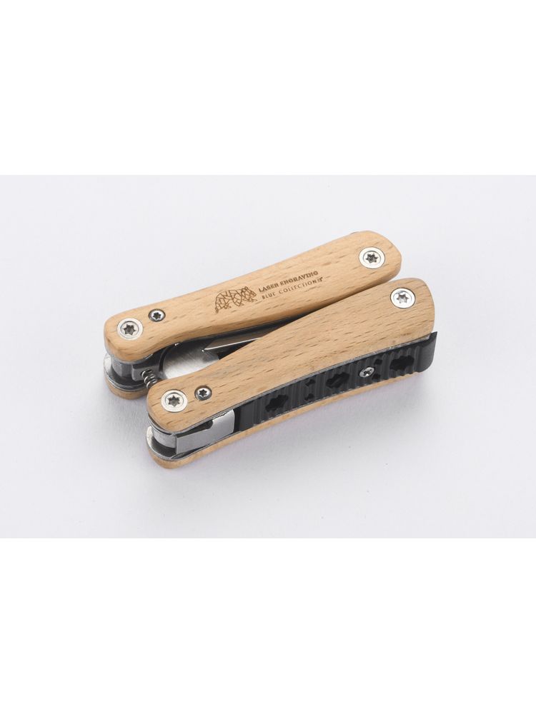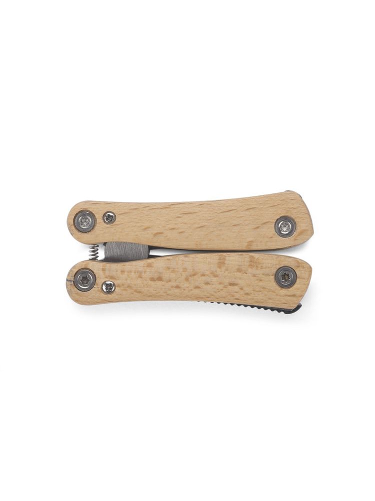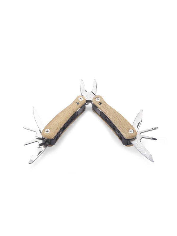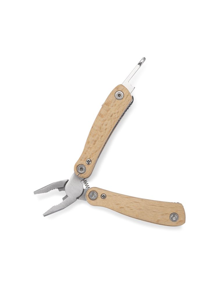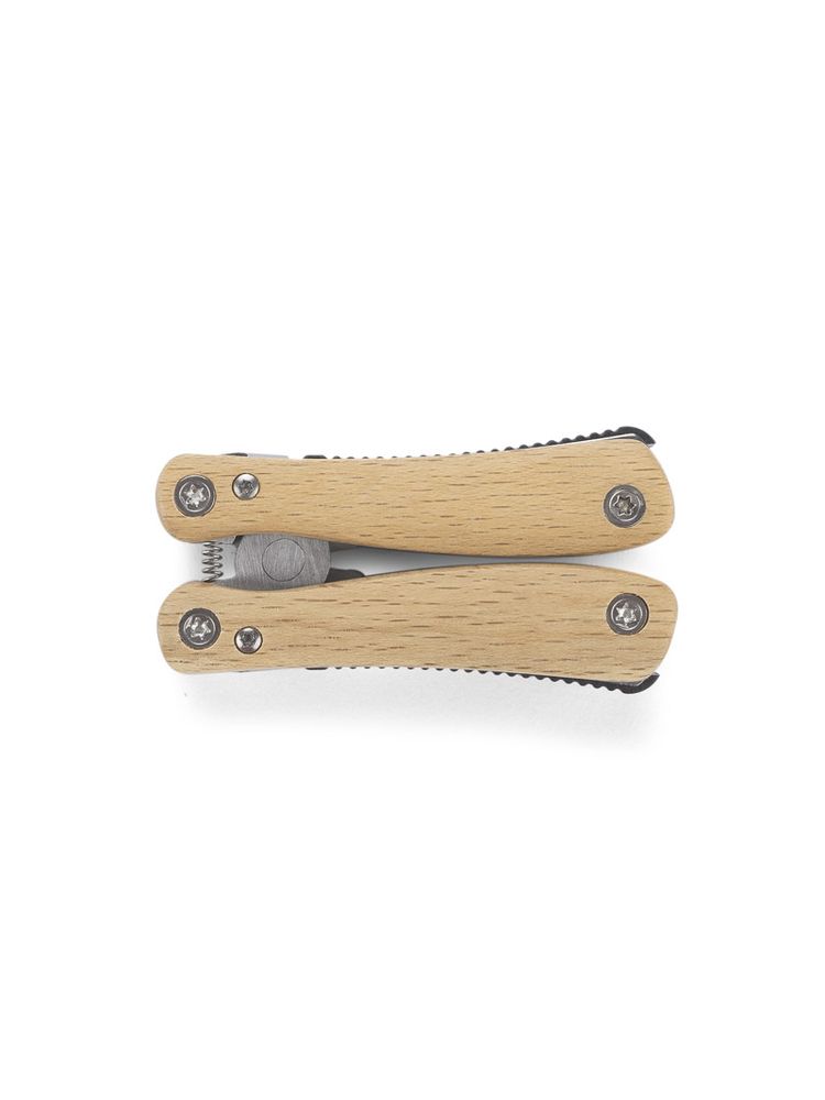 Narzędzie wielofunkcyjne FORT to gadżet w kieszonkowym rozmiarze, wykończony drewnem. Funkcje: kombinerki, przecinak, nóż, śrubokręt płaski i krzyżowy, pilnik, piła, otwieracz do butelek i puszek. W komplecie znajduje się również czarny, materiałowy pokrowiec na narzędzie.