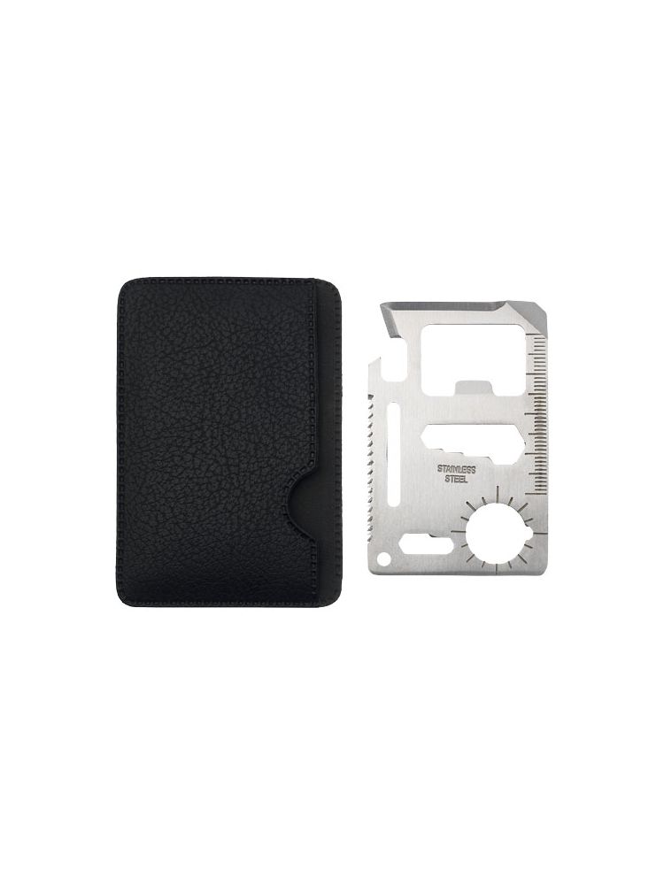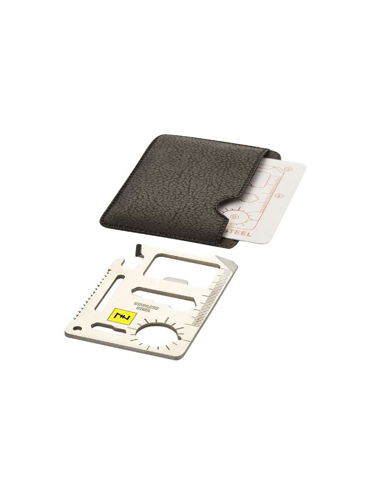 11-funkcyjne multinarzędzie w postaci karty kredytowej. Posiada etui z imitacji skóry.