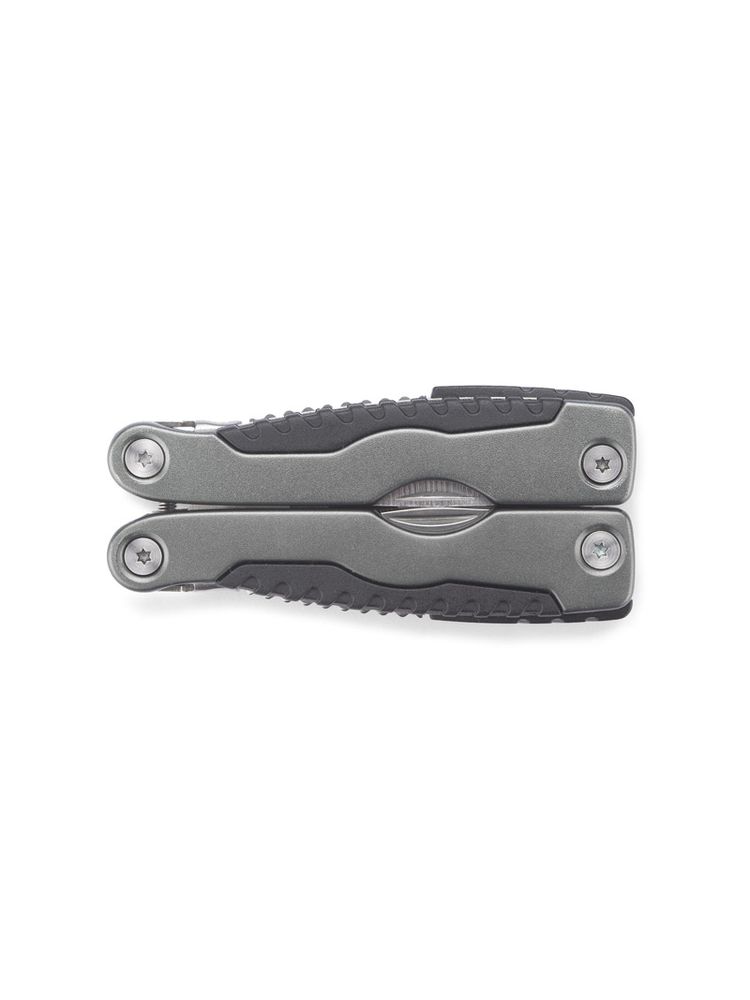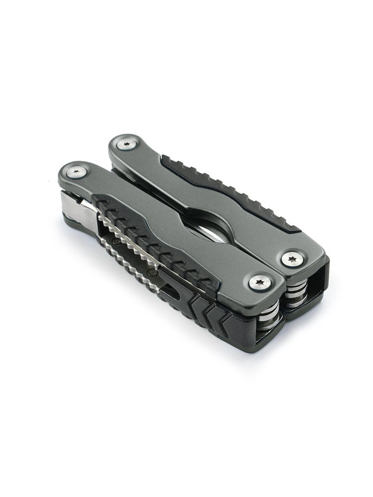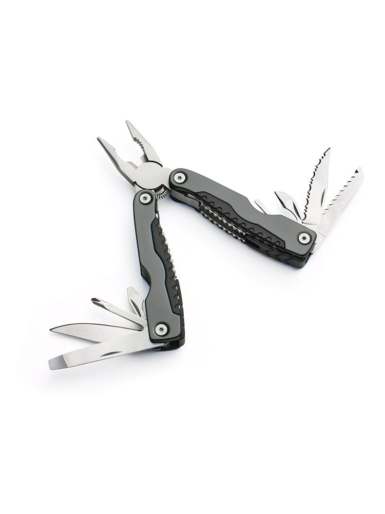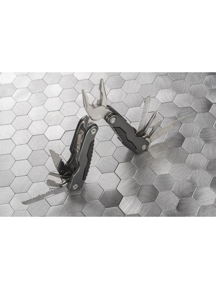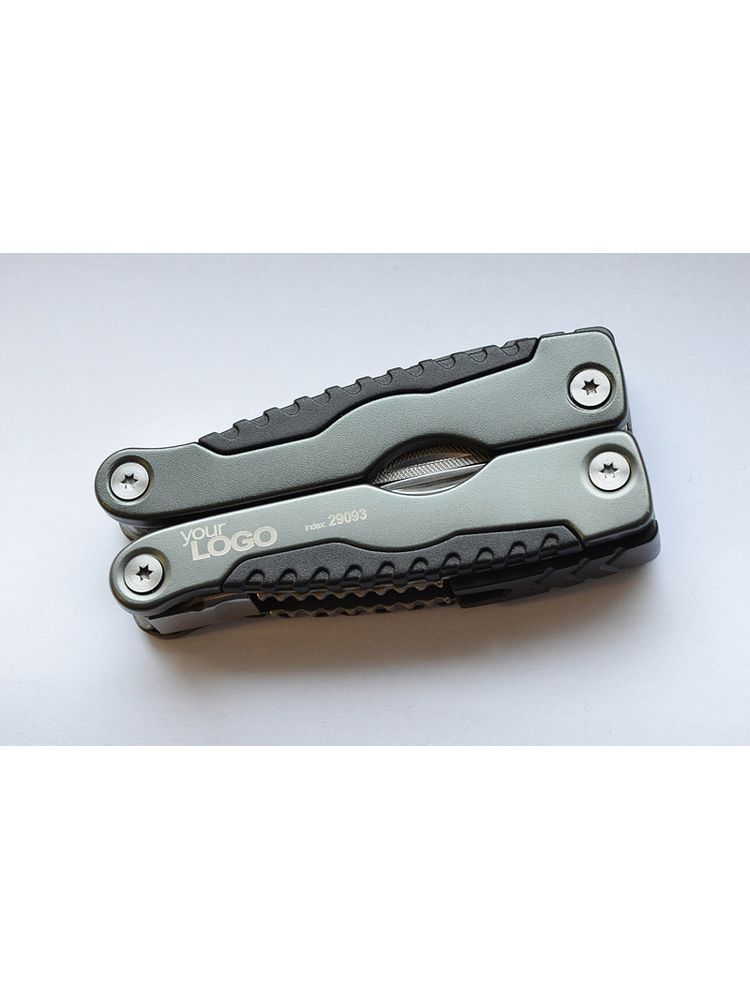 Metalowe narzędzie wielofunkcyjne zawierające w swoim składzie wszystkie potrzebne rzeczy do przeprowadzenia podstawowych prac. Przyrząd składa się z kombinerek, piłki do drewna, dwóch otwieraczy (do konserw i kapsli), pilnika do drewna i metalu, śrubokręta płaskiego, śrubokręta krzyżakowego i nożyków o ostrzach płaskim i ząbkowanym. Logo wygrawerujemy na powierzchni narzędzia.