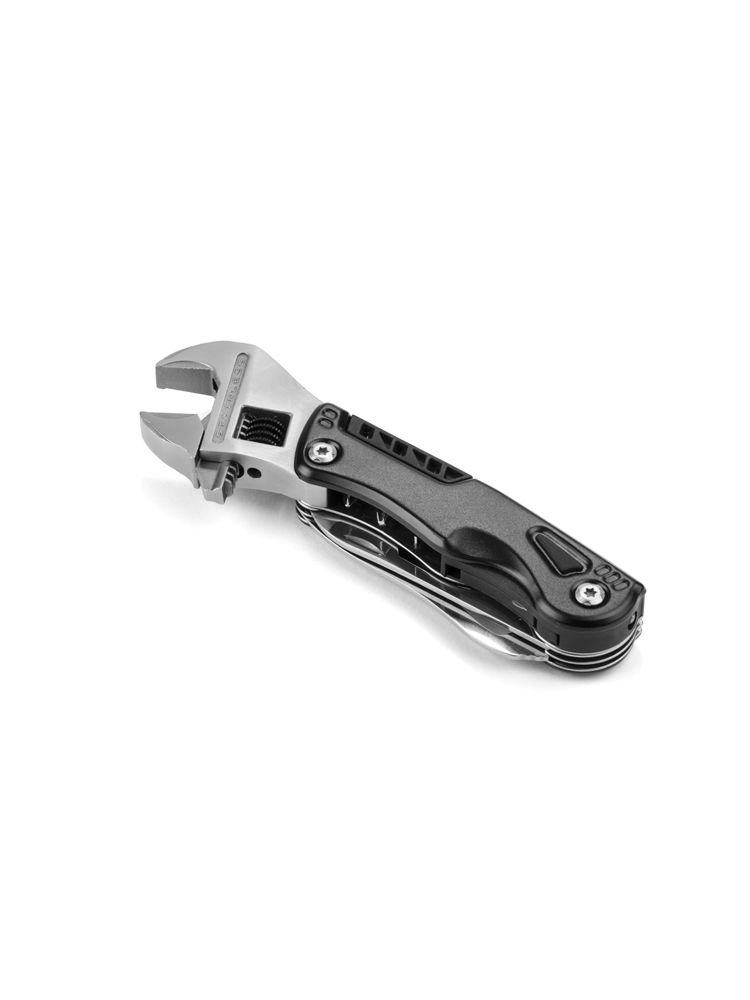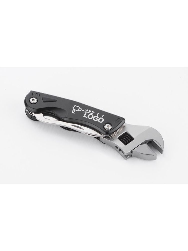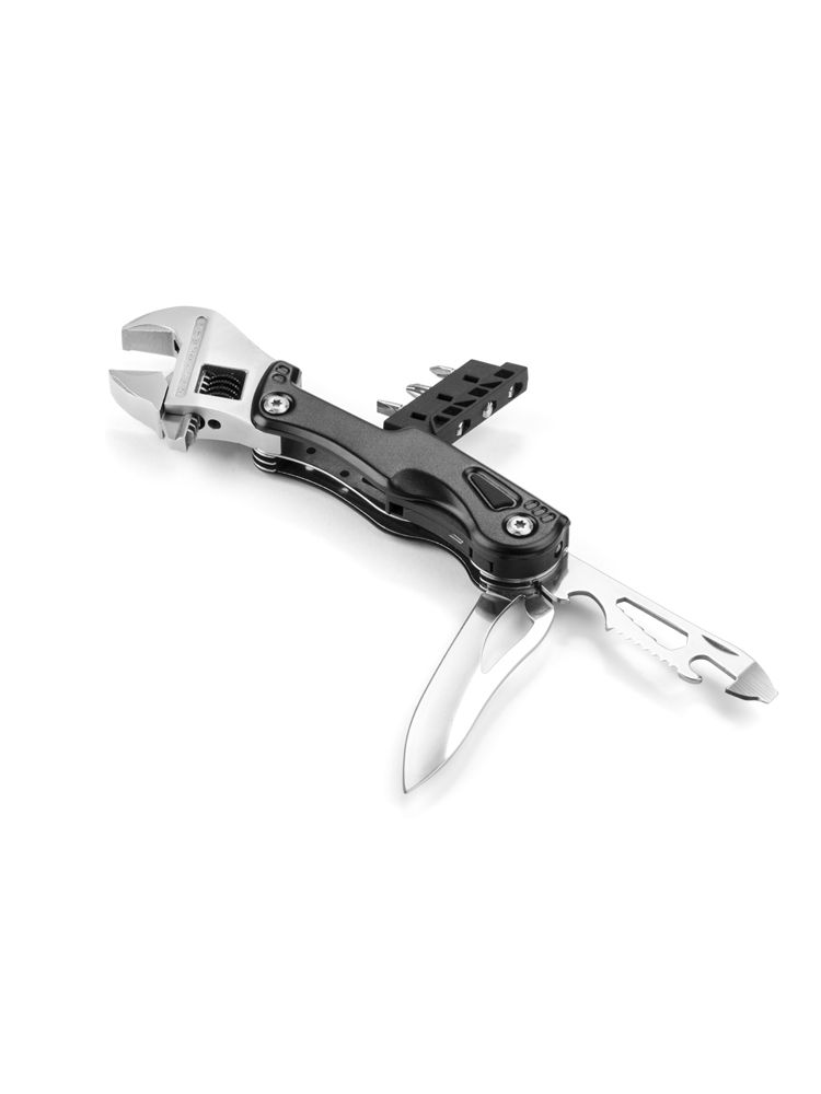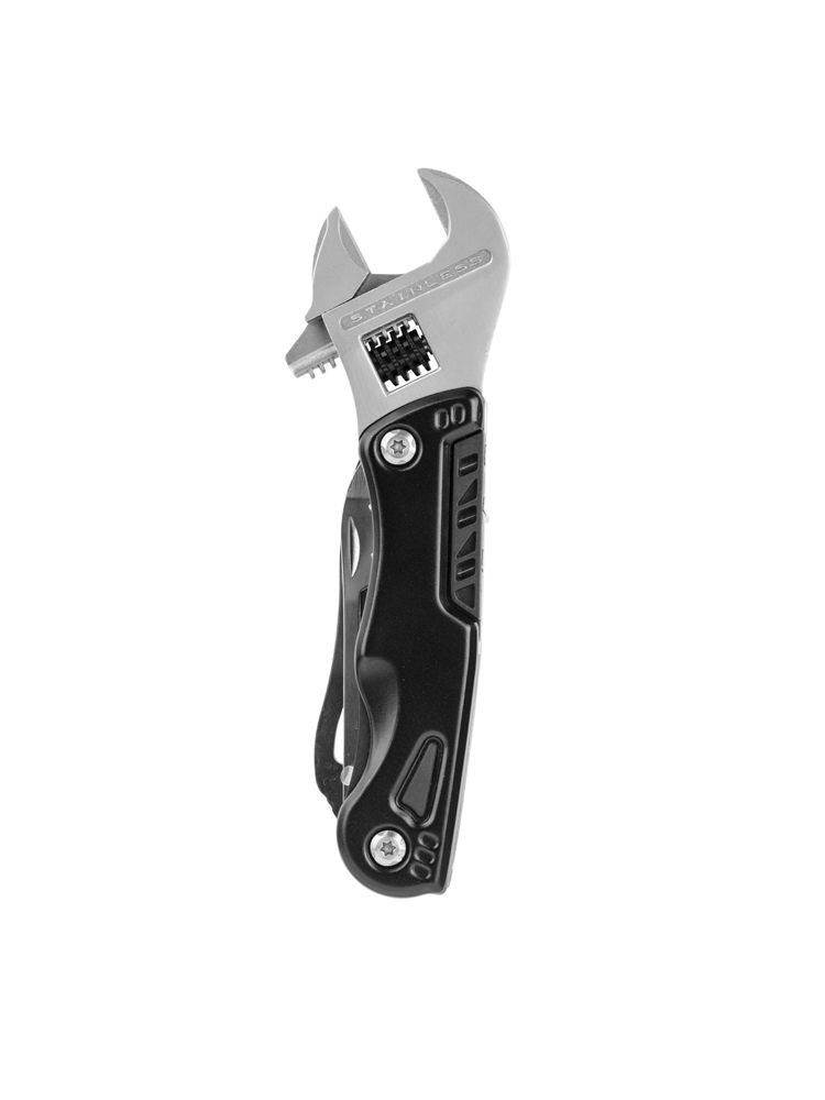 Jest to niezbędne narzędzie każdego majsterkowicza, które warto mieć przy sobie w przypadku nagłych awarii. Zawiera 9 funkcji w jednym narzędziu, z czego najważniejszym jest klucz szwedzki. Dodatkowo posiada takie funkcje jak: latarka, nóż, komplet 3 bitów, uniwersalny klucz sześciokątny, płaski śrubokręt, piłę oraz otwieracz do butelek i puszek. W komplecie znajduje się również czarny, materiałowy pokrowiec na narzędzie.