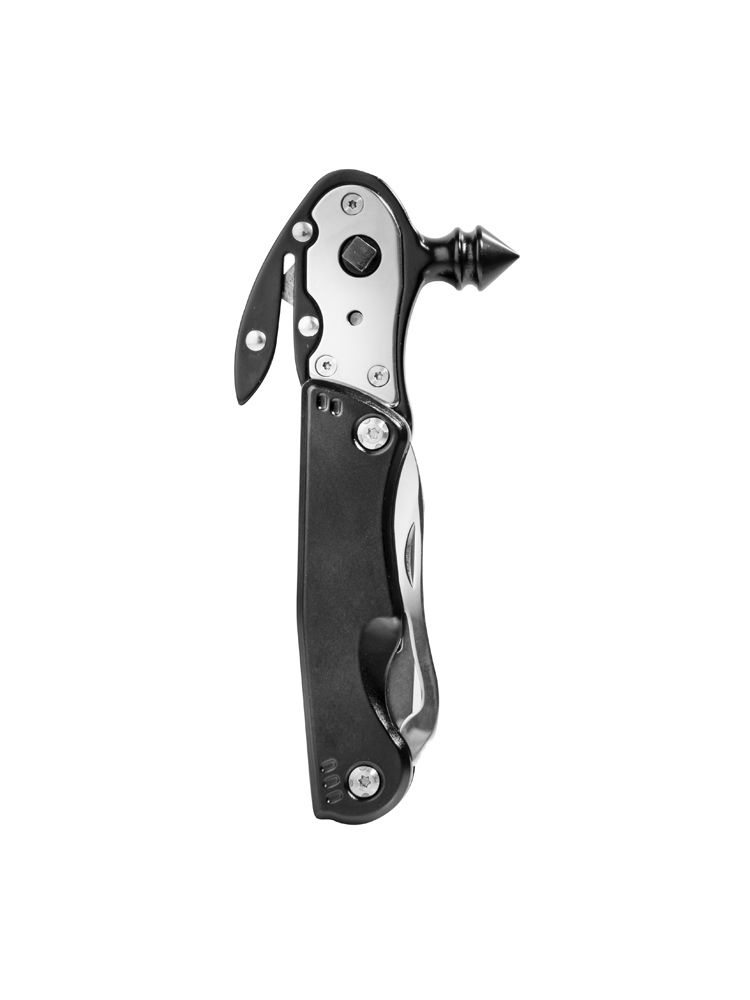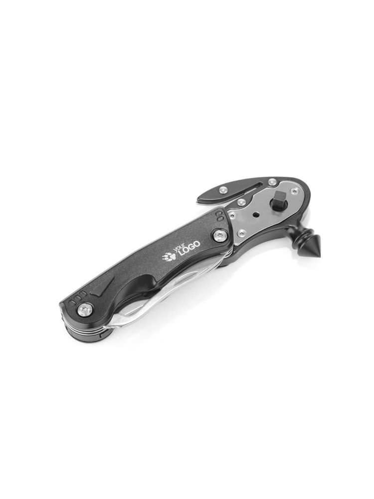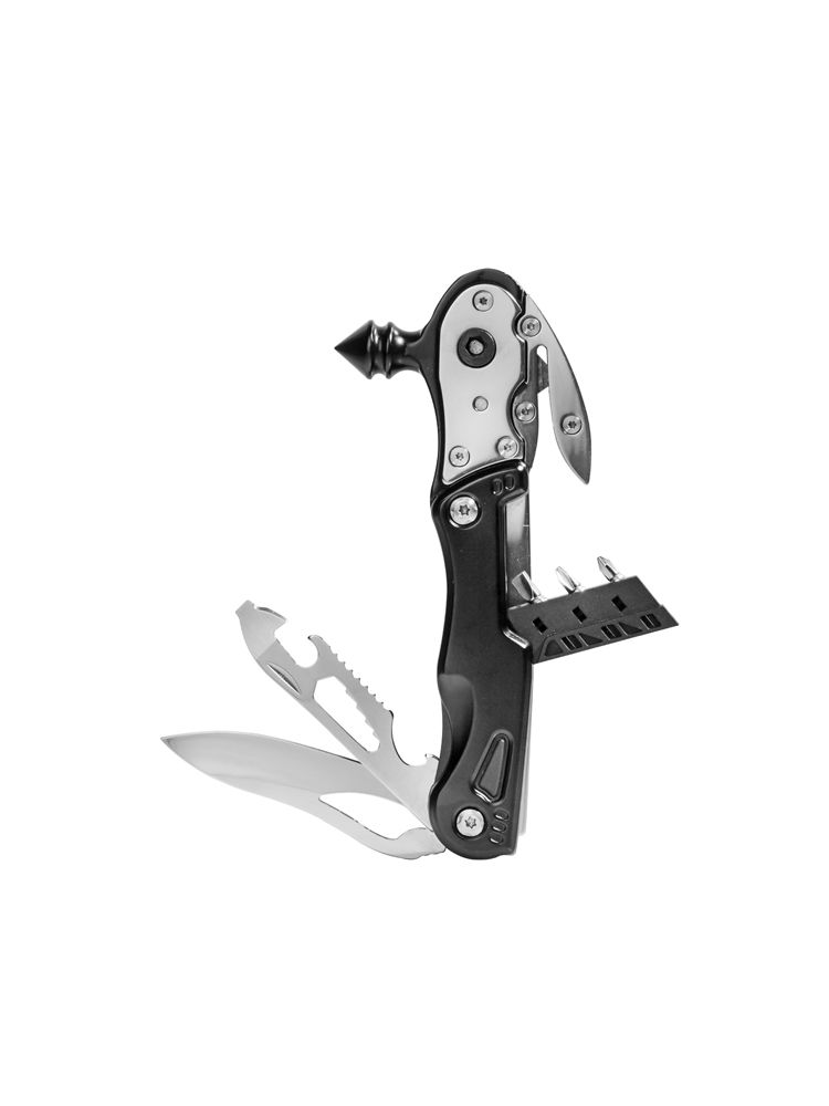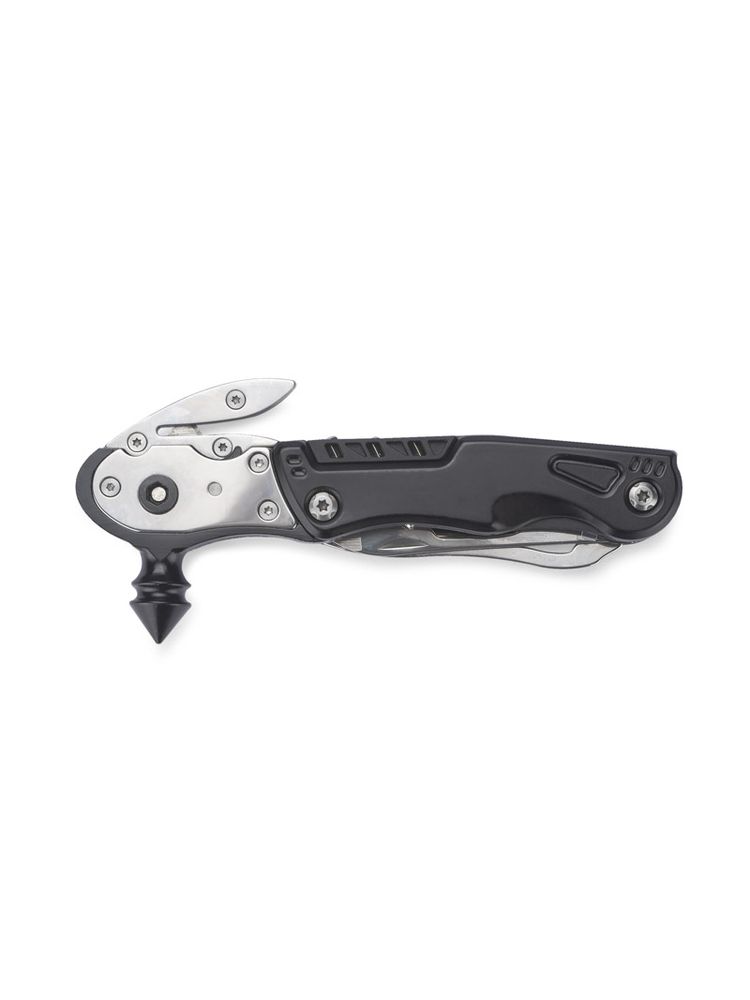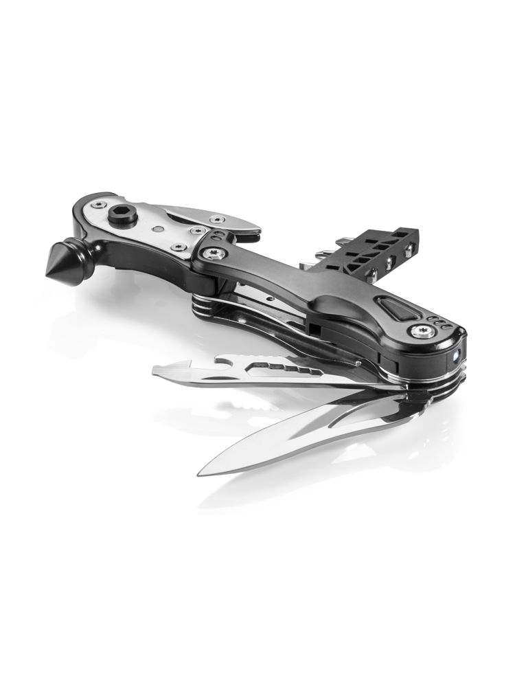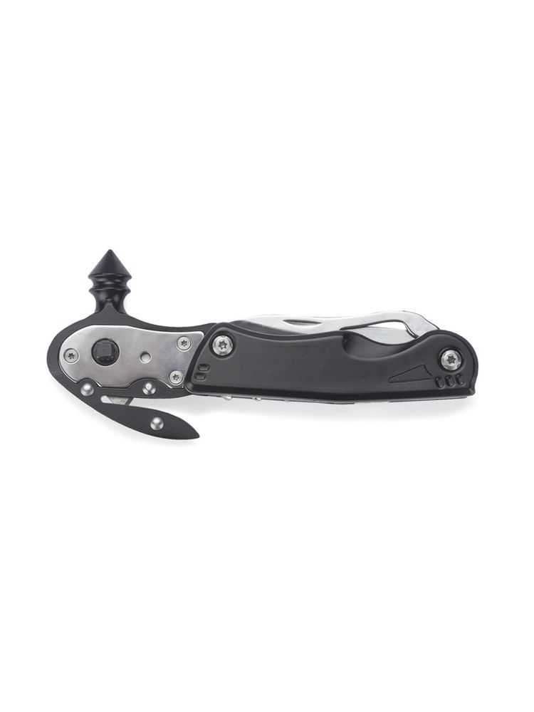 ESCAPE to niezbędne wyposażenie każdego samochodu, które warto mieć zawsze pod ręką. Zawiera aż 11 funkcji w jednym narzędziu z czego najważniejszymi są zbijak do szyb oraz przecinak do pasów bezpieczeństwa. Dodatkowo posiada takie funkcje jak: latarka, nóż, komplet 3 bitów, dwukierunkowy uchwyt na bity, uniwersalny klucz sześciokątny, płaski śrubokręt, piłę oraz otwieracz do butelek i puszek. W komplecie znajduje się również czarny, materiałowy pokrowiec na narzędzie.