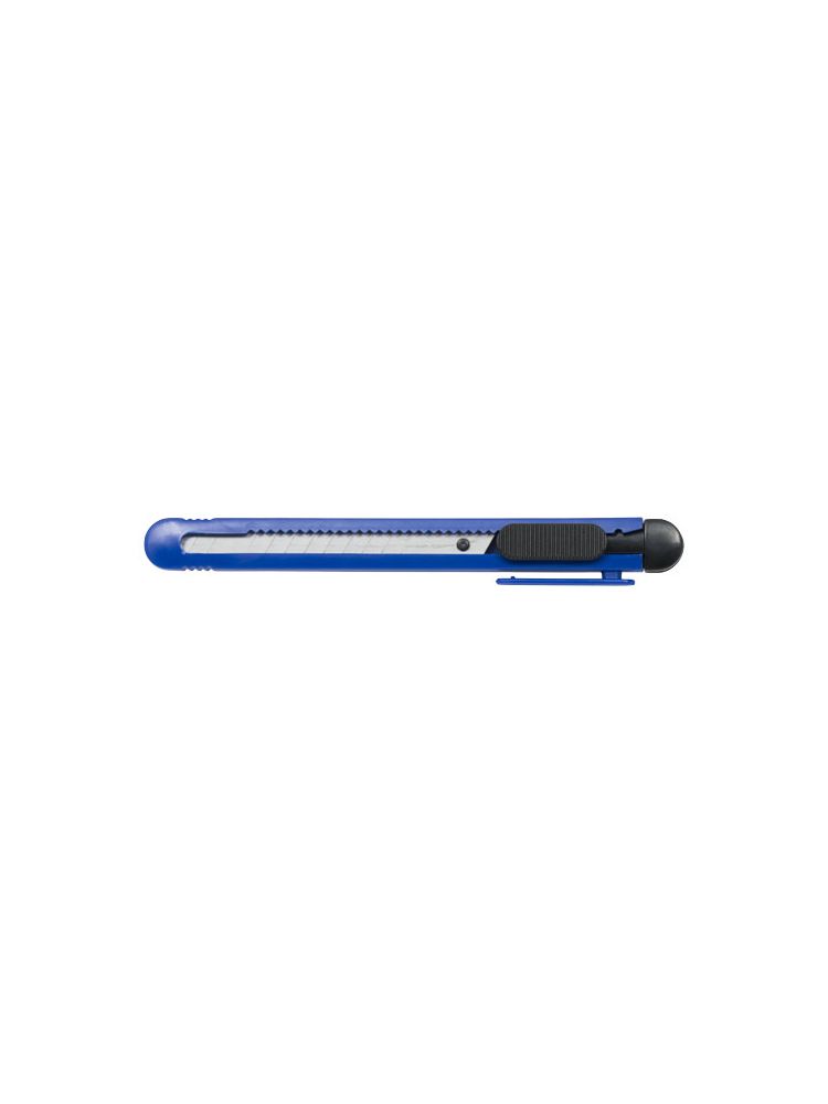 Nóż tapicerski z chowanymi ostrzami (80 × 9mm). Każde ostrze ma 12 segmentów przygotowanych do odłamywania. Zintegrowane narzędzie do odłamywania zużytych segmentów i klips do przyczepienia do kieszeni.
