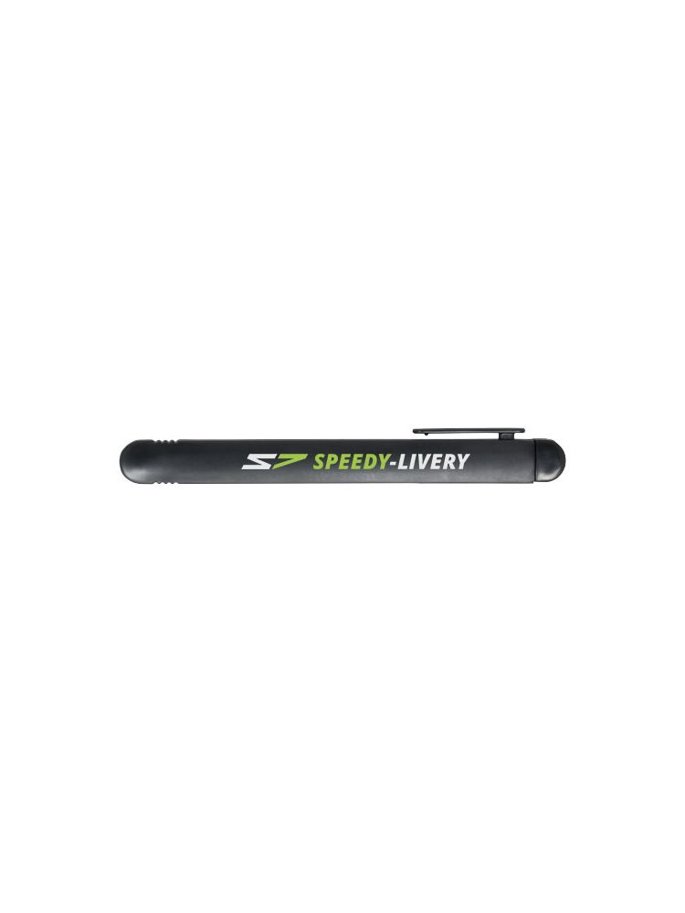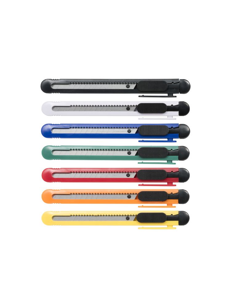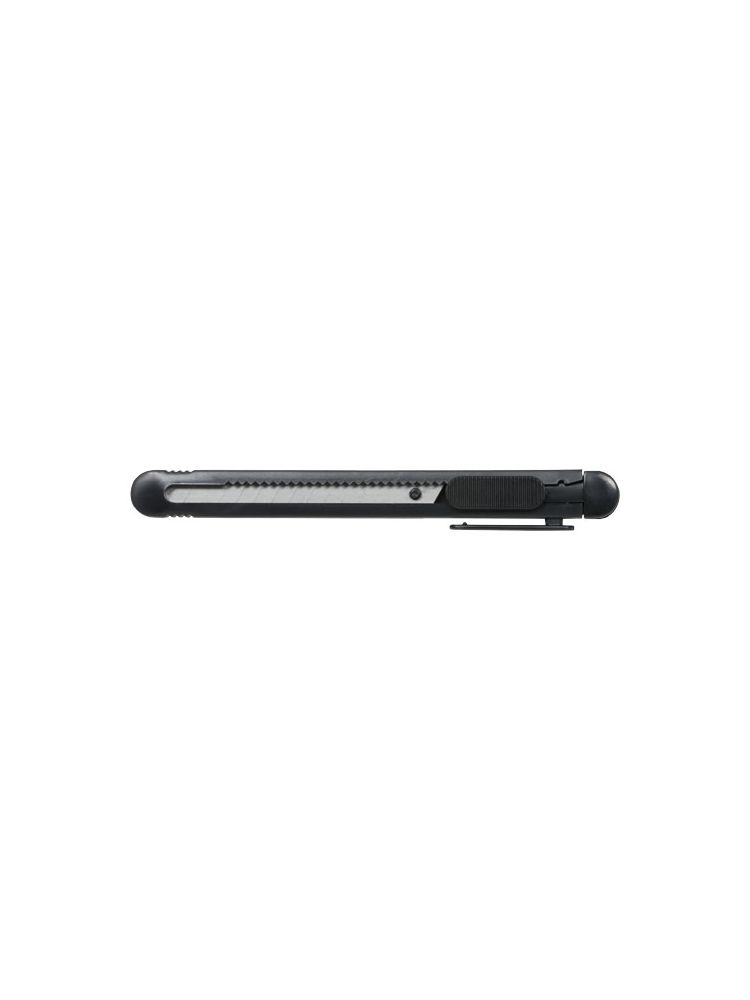Nóż tapicerski z chowanymi ostrzami (80 × 9mm). Każde ostrze ma 12 segmentów przygotowanych do odłamywania. Zintegrowane narzędzie do odłamywania zużytych segmentów i klips do przyczepienia do kieszeni.