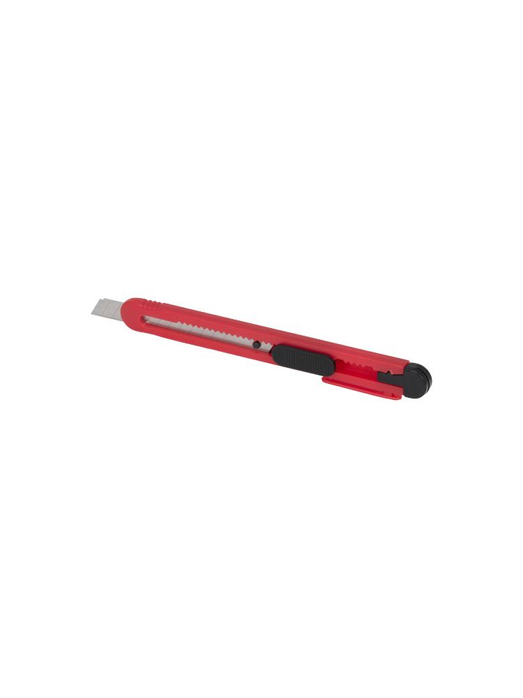Nóż tapicerski z chowanymi ostrzami (80 × 9mm). Każde ostrze ma 12 segmentów przygotowanych do odłamywania. Zintegrowane narzędzie do odłamywania zużytych segmentów i klips do przyczepienia do kieszeni.