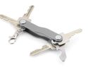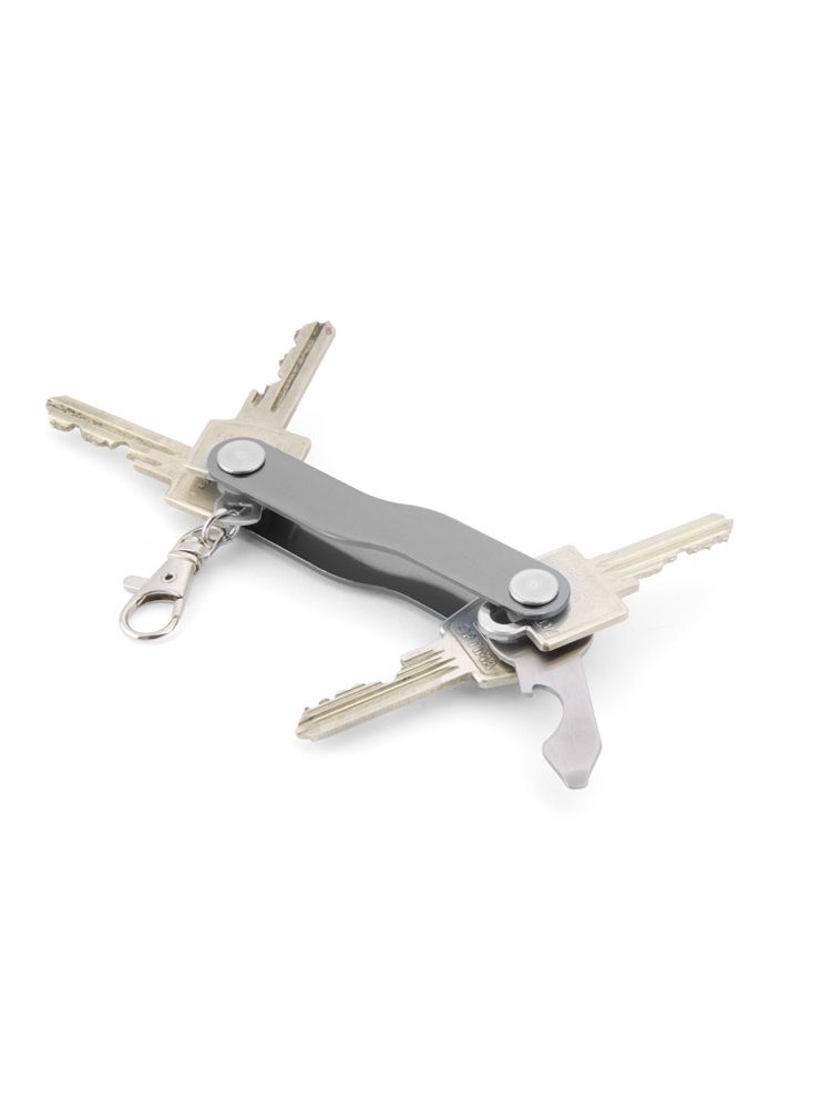 Ten gadżet pomaga doskonale zorganizować i sprytnie spakować klucze do rozmiarów scyzoryka. Jego ergonomiczny kształt poprawia komfort noszenia w kieszeni czy też zmniejsza ryzyko porysowania innych rzeczy w damskiej torebce. Karabińczyk m.in. pozwala na dołączenie większych kluczy np. do samochodu. Dodatkowo w zestawie znajduje się specjalny klucz zwiększający funkcjonalność organizera o płaski śrubokręt oraz otwieracz do butelek. Pasuje do większości rodzajów domowych kluczy wyposażonych w otwór u szczytu.