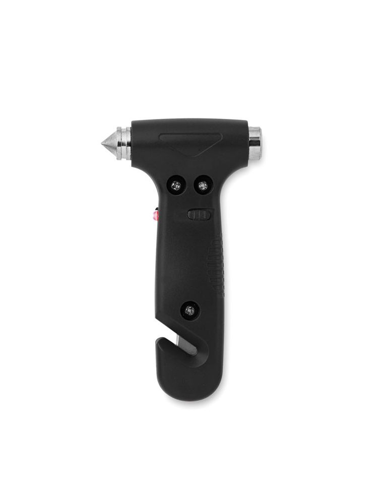 Młotek bezpieczeństwa 3 w 1 z przecinakiem pasów i latarką 1 LED. 3 baterie AG3 w komplecie.
