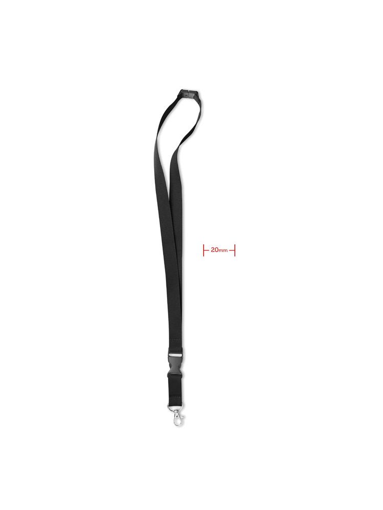 Smycz z metalowym karabinkiem. Odpinana klamra i złączka bezpieczeństwa. Szerokość: 20mm.