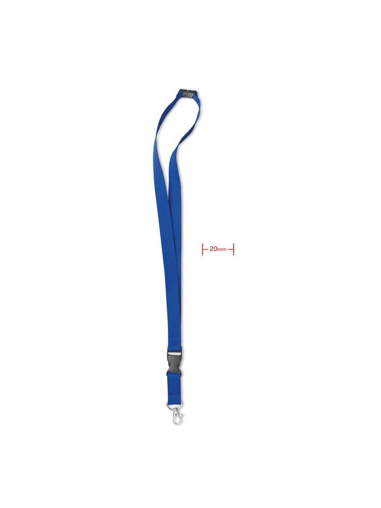 Smycz z metalowym karabinkiem. Odpinana klamra i złączka bezpieczeństwa. Szerokość: 20mm.