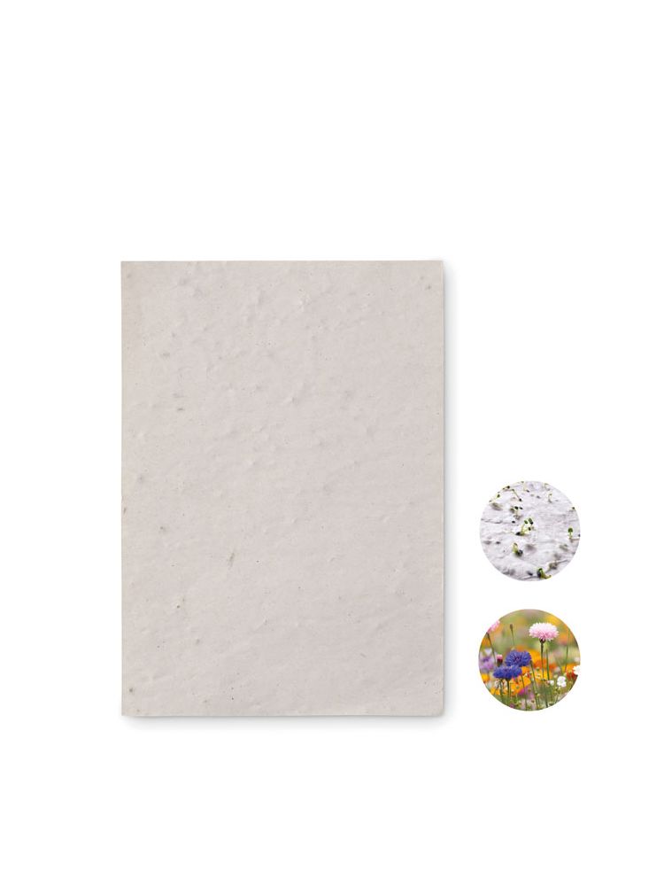 Arkusz papieru z recyklingu z nasionami dzikich kwiatów w formacie A6 (80 gr/m²).Wyprodukowano w UE.