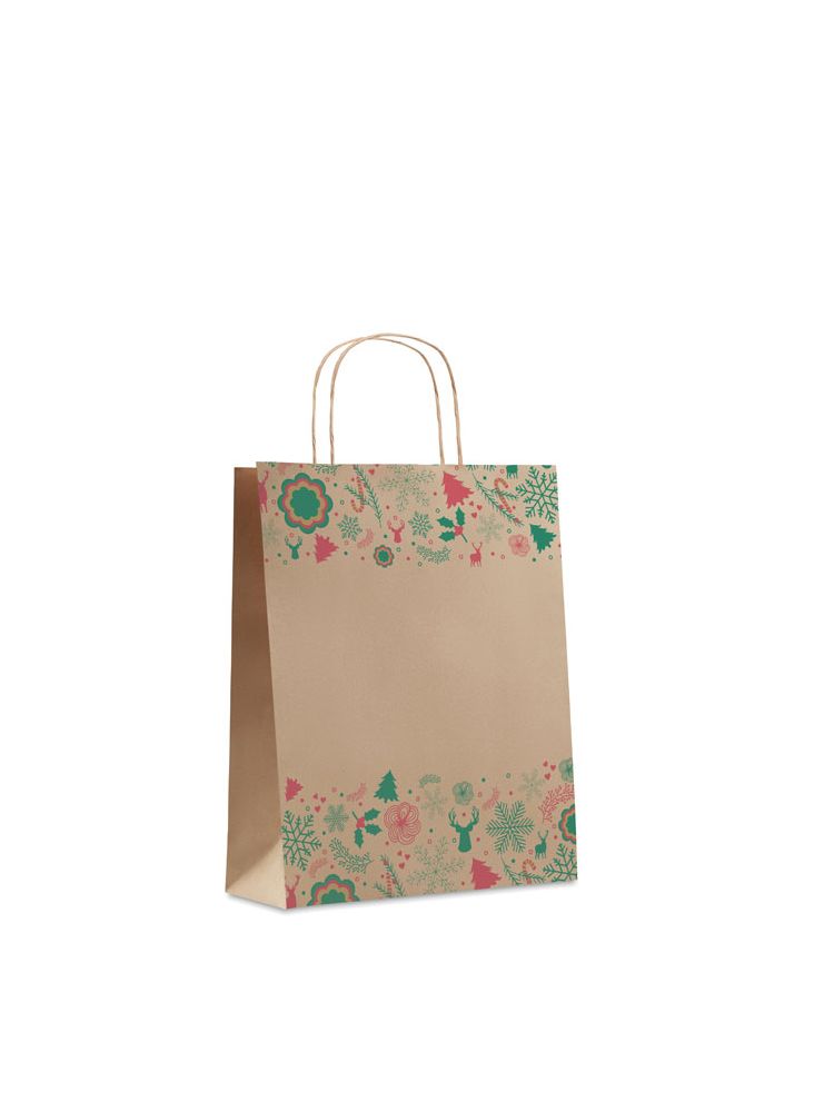 Świąteczna średnia torba papierowa na prezenty (w 50% z recyklingu). 90 gr/m². Wyprodukowano w UE.