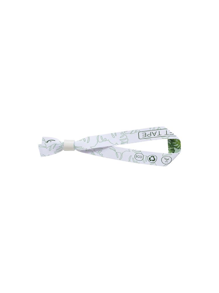 Festiwalowa opaska wykonana z PET z recyclingu z plastikowym zamkiem zabezpieczającym. Zawiera pełnokolorową dekorację z dwóch stron. Jednokierunkowy zamek zabezpieczający uniemożliwia zdejmowanie przedmiotu, czyniąc ją doskonałym zabezpieczeniem w trakcie imprez i wydarzeń.