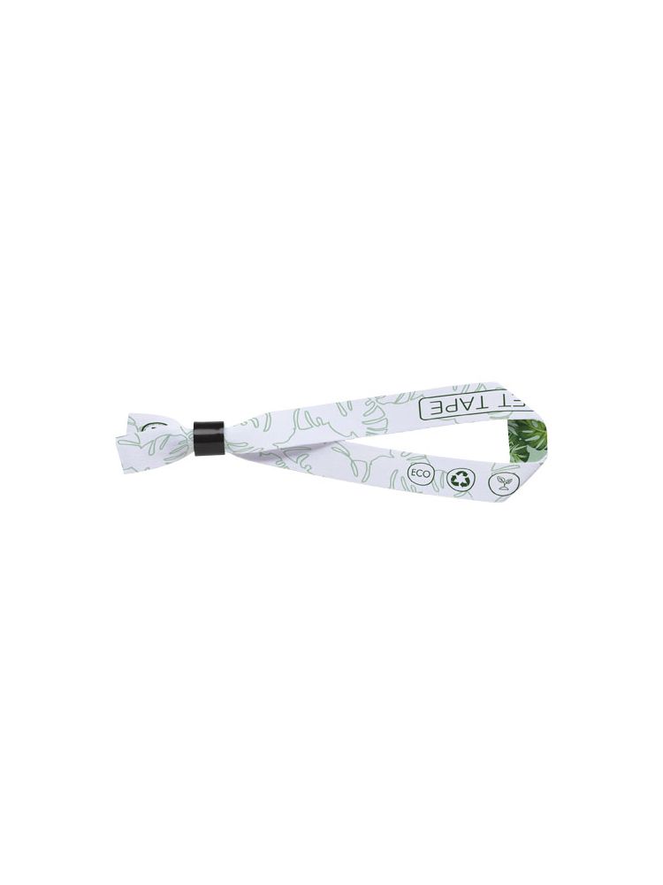 Festiwalowa opaska wykonana z PET z recyclingu z plastikowym zamkiem zabezpieczającym. Zawiera pełnokolorową dekorację z dwóch stron. Jednokierunkowy zamek zabezpieczający uniemożliwia zdejmowanie przedmiotu, czyniąc ją doskonałym zabezpieczeniem w trakcie imprez i wydarzeń.