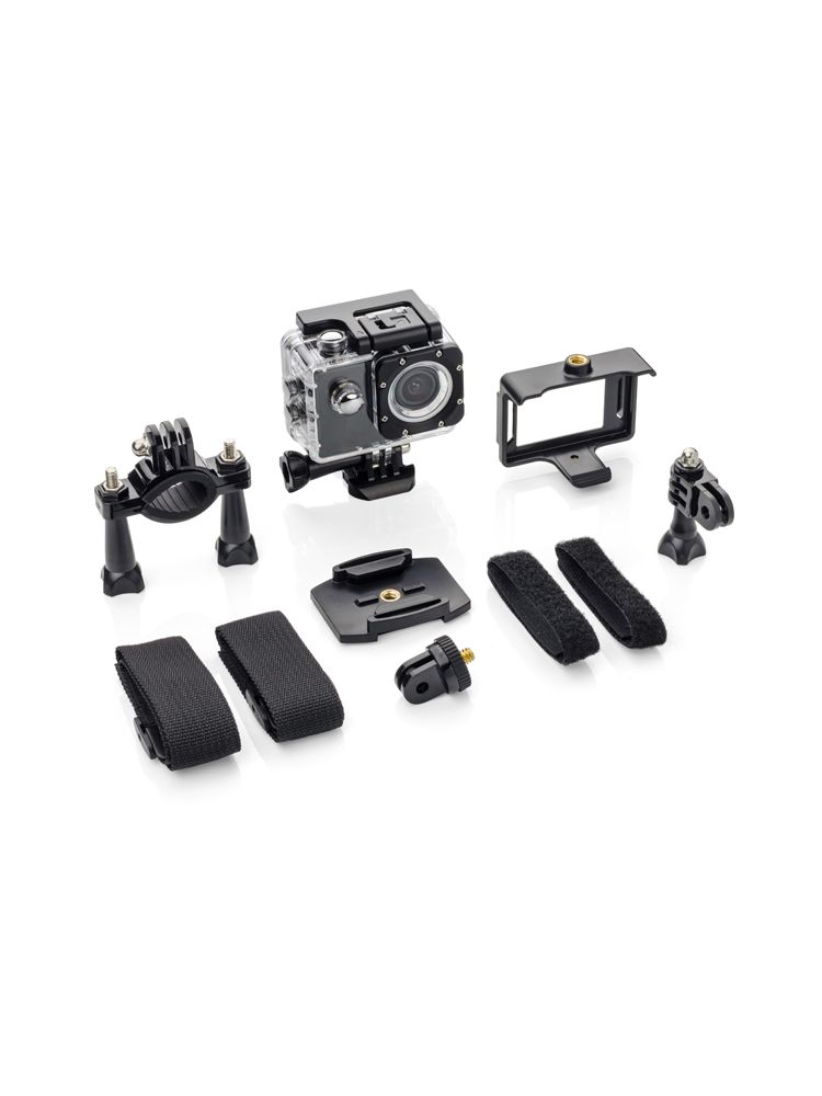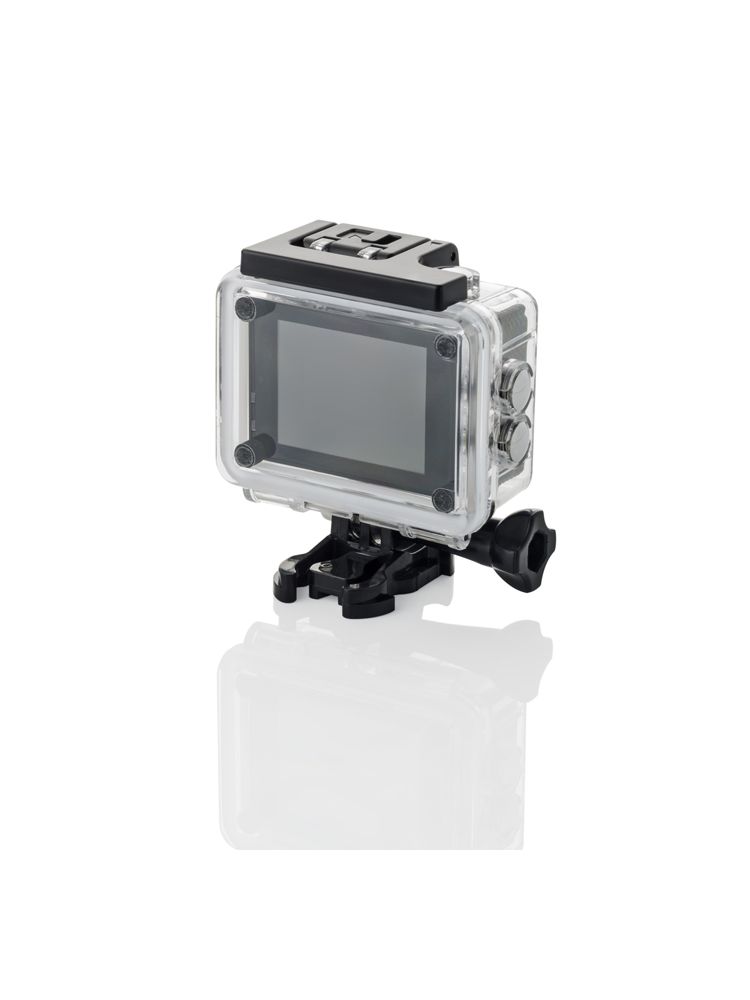 Kamera sportowa DIVE pozwoli uchwycić wszystkie najcenniejsze chwile nawet w najtrudniejszych warunkach. Wodoodporna obudowa gwarantuje możliwość kręcenia filmów do 30 m pod wodą, a doskonała jakość obrazu 1080p (Full HD) czyni ten produkt poza gadżetem reklamowym również wysokiej klasy sprzęt do nagrywania filmów. Kamera jest zapakowana w eleganckie pudełko. W środku, prócz niej znajdują się niezbędne akcesoria umożliwiające min. zamocowanie kamery na rowerze, kasku lub desce rozdzielczej w samochodzie aby zmienić ją w rejestrator samochodowy. Przyjazny interfejs oraz przejrzysty ekran o przekątnej 2,0” pozwoli na bezproblemowe użytkowanie produktu.