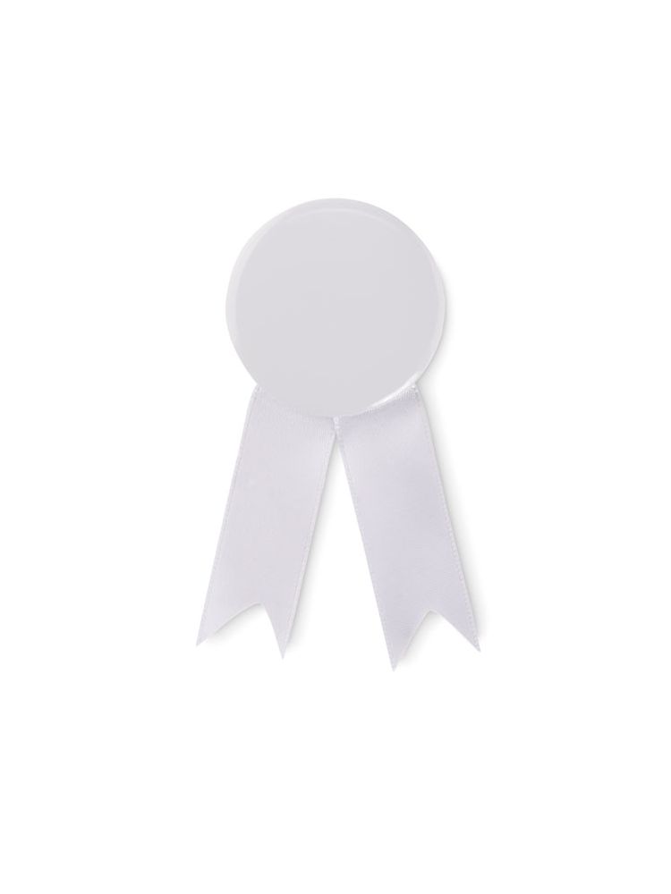 Odznaka, przypinka wykończona wstążką z cyny i z metalową agrafką z tyłu.