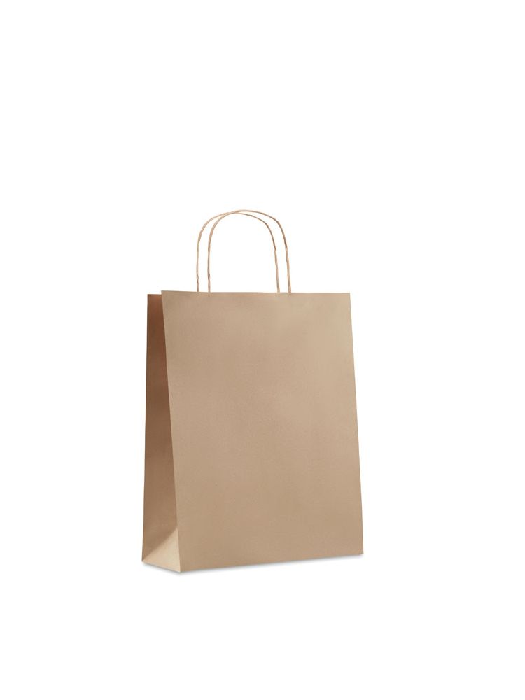 Średnia papierowa torebka prezentowa. Torba papierowa to świetny sposób na podanie prezentu czy noszenie przedmiotów podczas zakupów. 90 gr / m². FSC®-certified | FSCMIX, P5.3, FSC-C213206